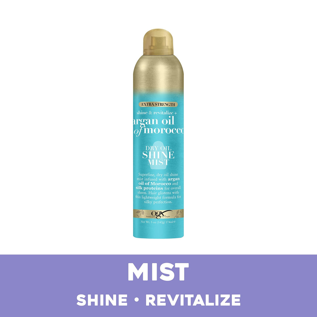 OGX Revitalize + Argan Shine Extra Strength Dry Oil Conditioning Mist with Argan Oil & Silk Proteins, Light Nourishing Hair Treatment to Soften Hair & Add Luminous Shine, 5 Ounce