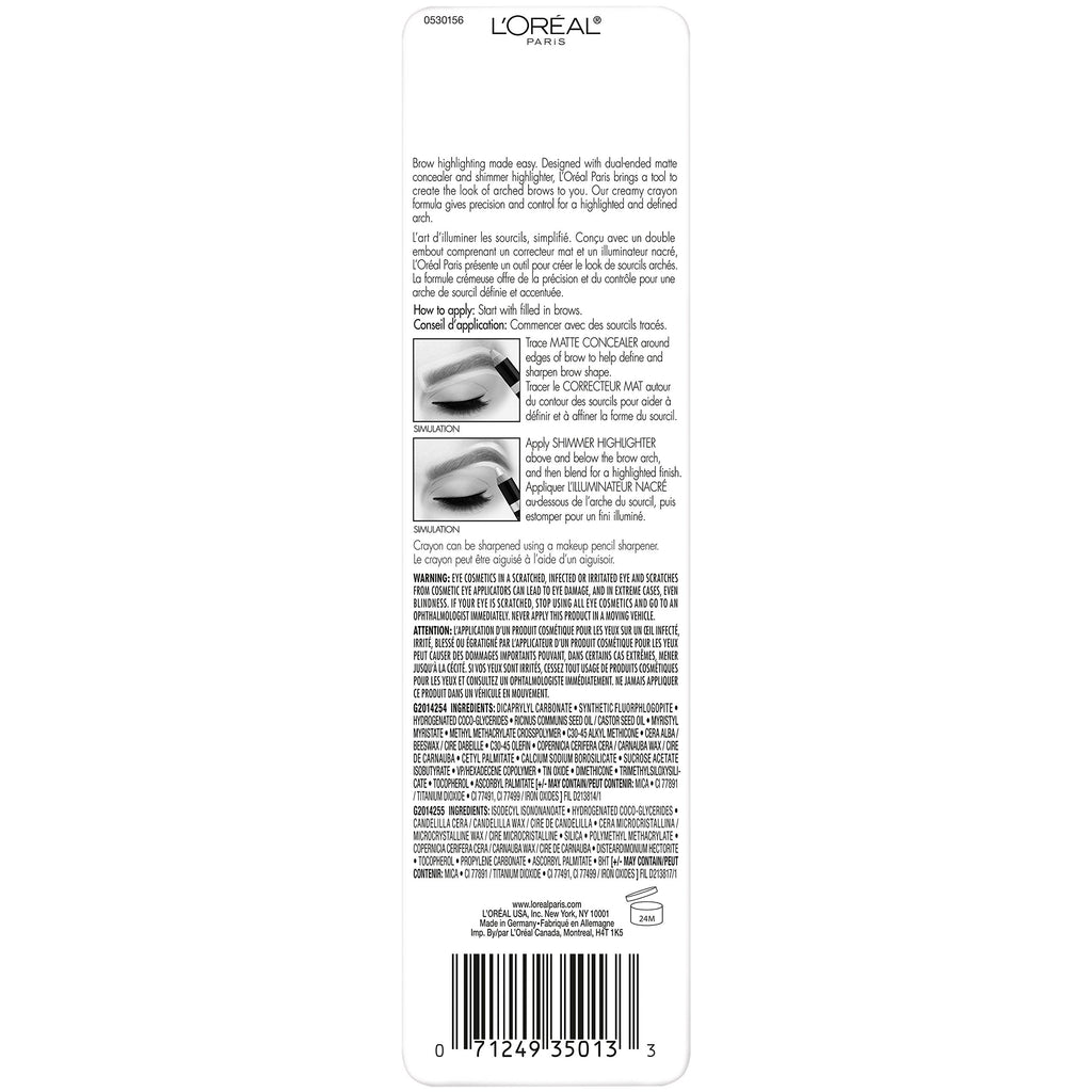 L'Oreal Paris Cosmetics Stylist Brow Raiser Highlighter Duo, Light, 0.16 Ounce