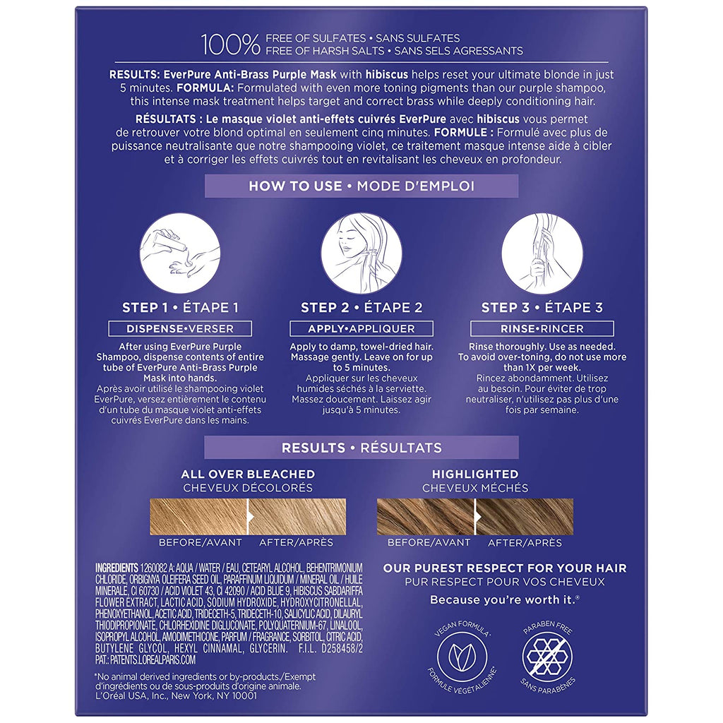 L'Oreal Paris EverPure Ultra Pigmented Anti Brass Purple Rinse-Out Mask for Bleached, Blonde or Highlighted Hair, 3 Ounce