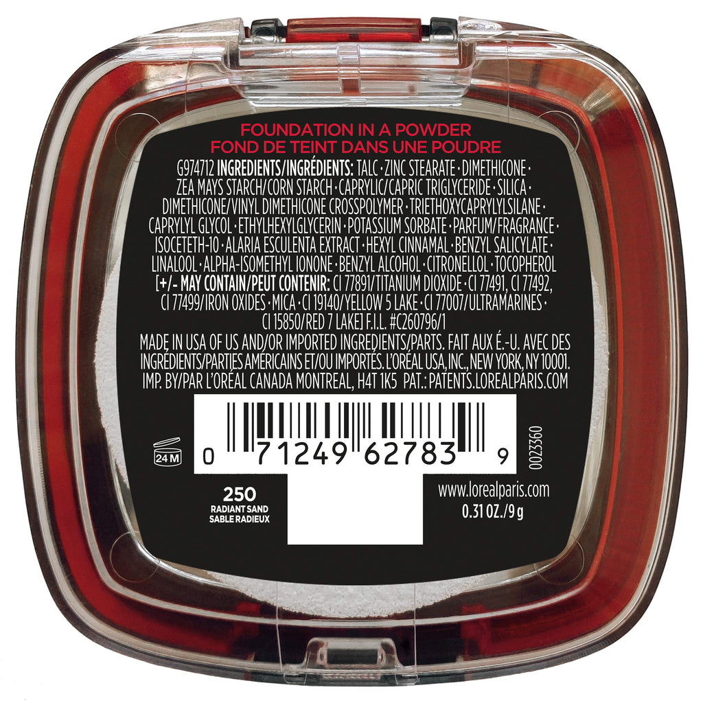 L'Oreal Paris Infallible Fresh Wear Foundation in a Powder, Up to 24H Wear, 250 Radiant Sand, 0.31 Fl Oz