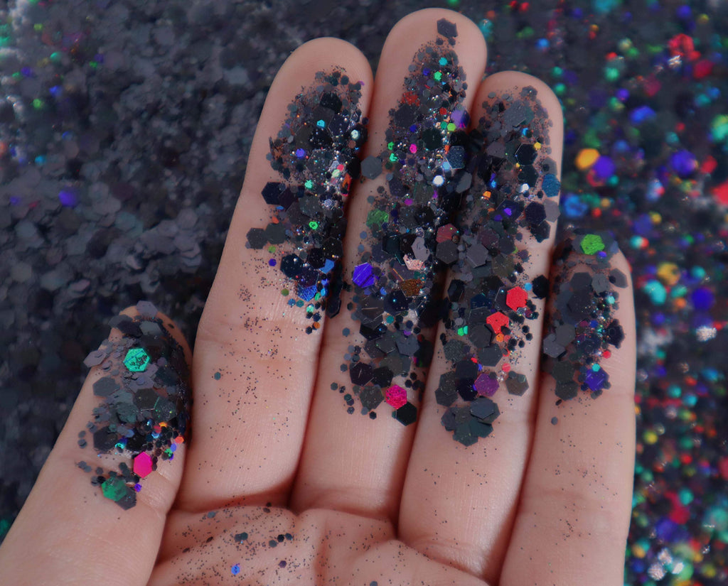 Black Holographic - Cosmetic Grade Chunky Glitter - Chunky Hexagon Shape - Festival Rave Makeup Face Body Nail Art Crafts Resin - Solvent Resistant