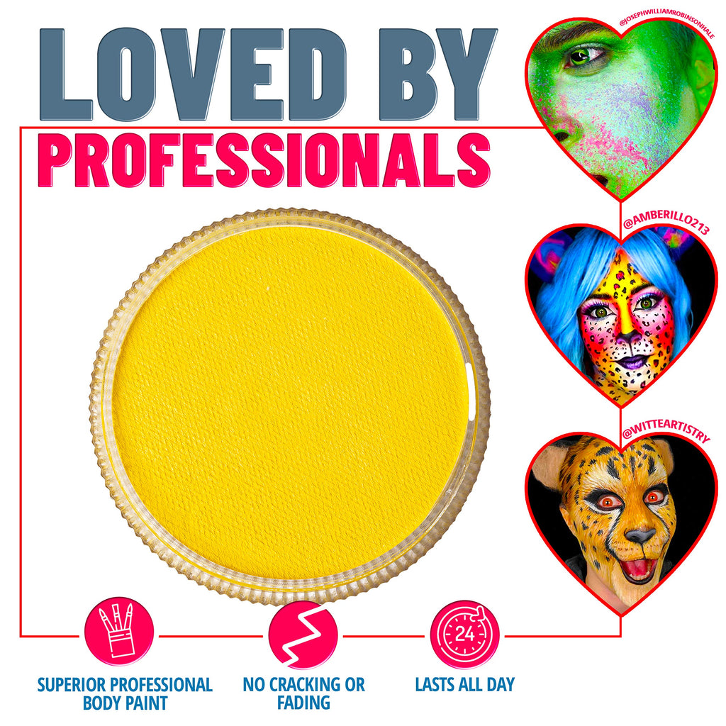 Blue Squid PRO Face Paint - Classic Yellow (30gm), Superior Quality Professional Water Based Single Cake, Face & Body Makeup Supplies for Adults, Kids & SFX