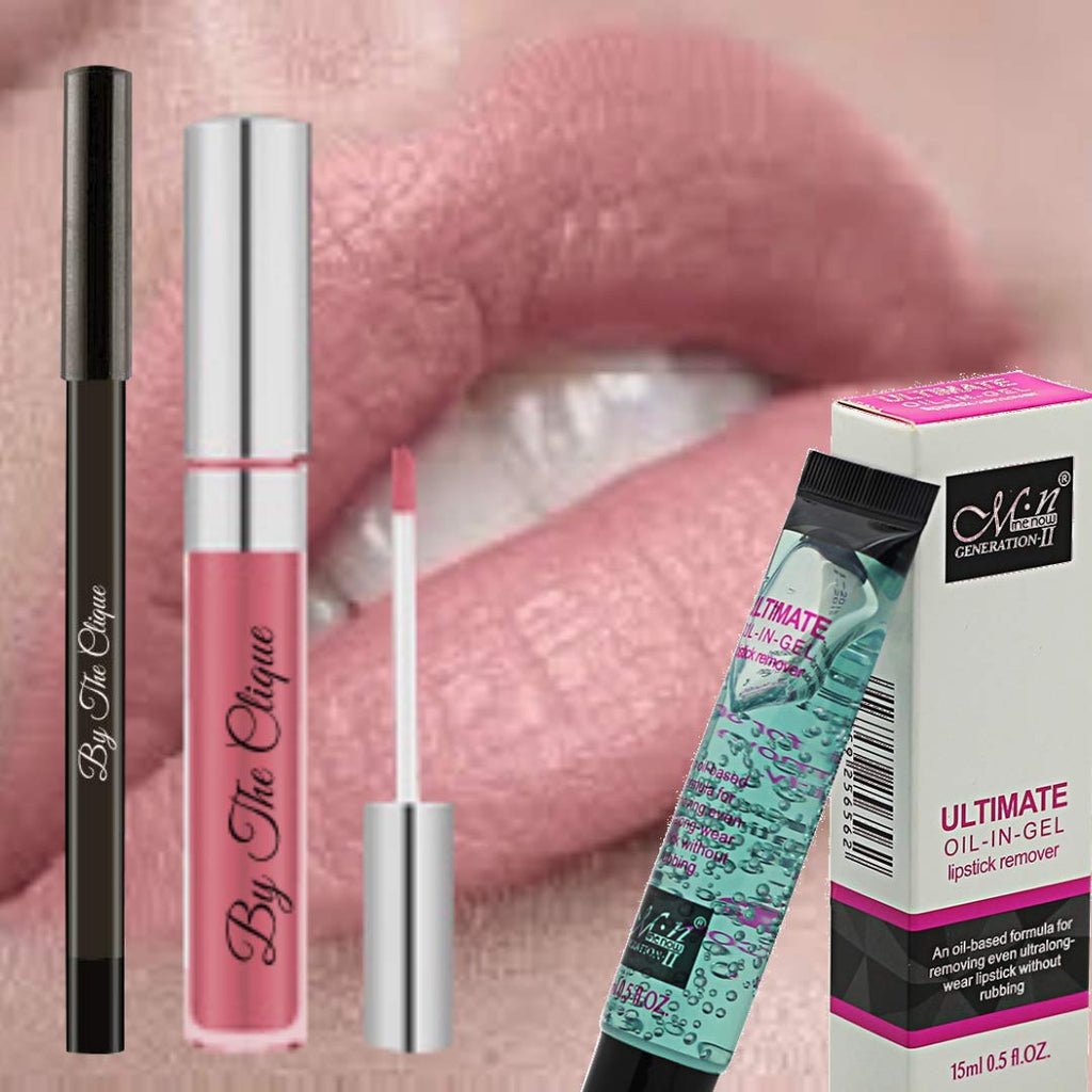 By The Clique Premium Pink Matte Lipstick, Liner and Remover Set | Pale Pink | Blushing Bride
