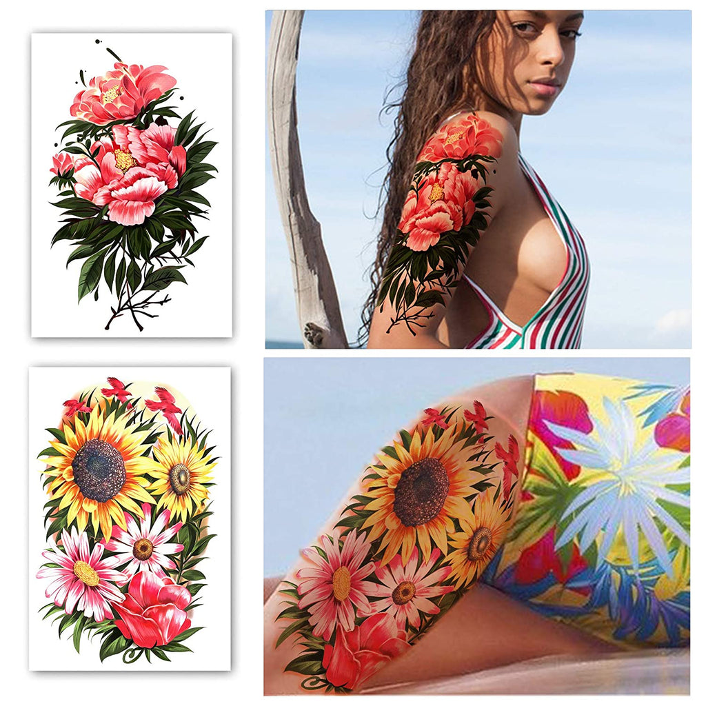 Full Arm Waterproof Temporary Tattoos 8 Sheets and Half Arm Shoulder Tattoo 10 Sheets, Extra Large LastingTattoo Stickers for Girls and Women (22.83"X7.1")