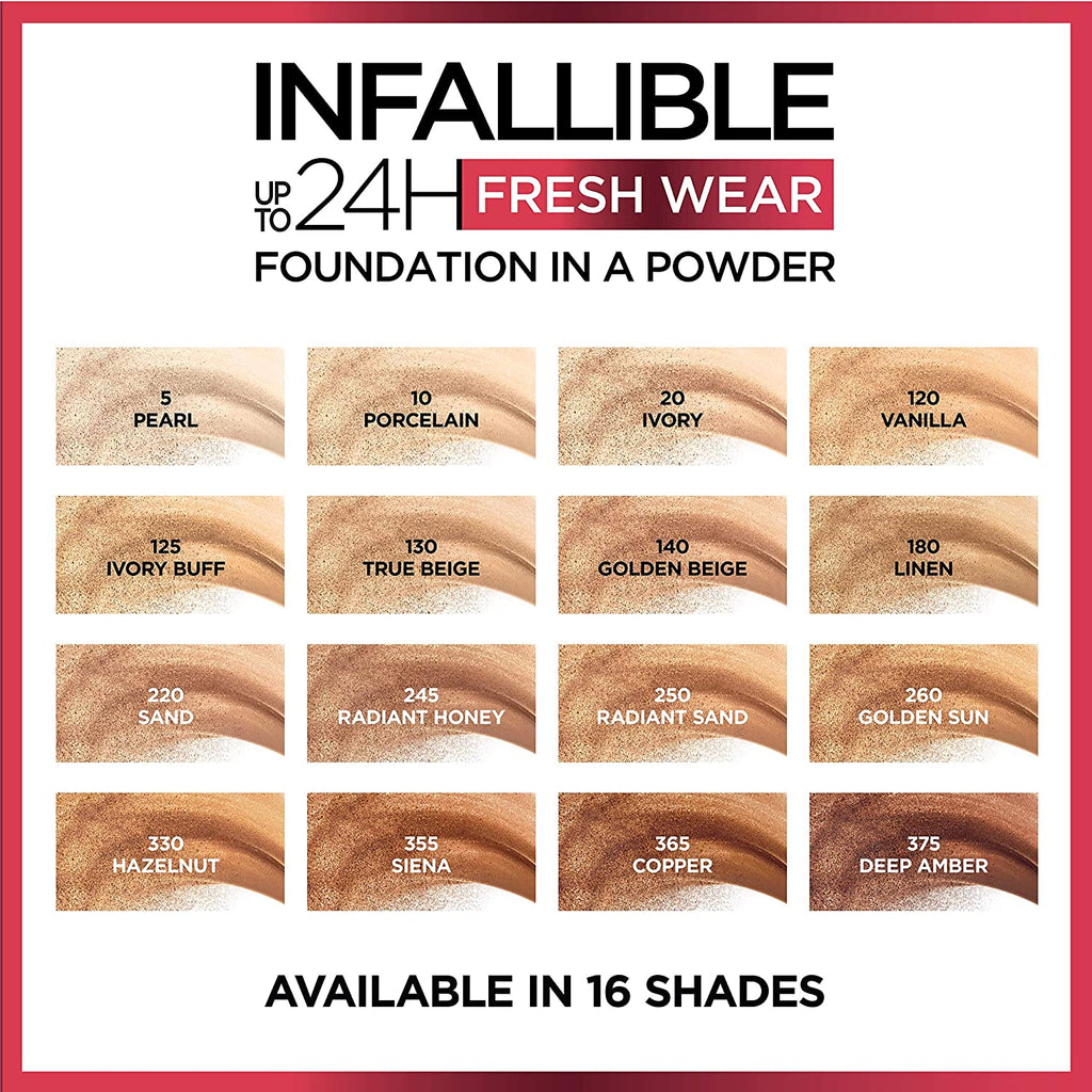 L'Oreal Paris Infallible Fresh Wear Foundation in a Powder, 140 Golden Beige, 0.31 Fl Oz