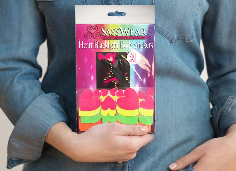 Sasswear Blacklight Heart Body Stickers - Neon, 40/pk