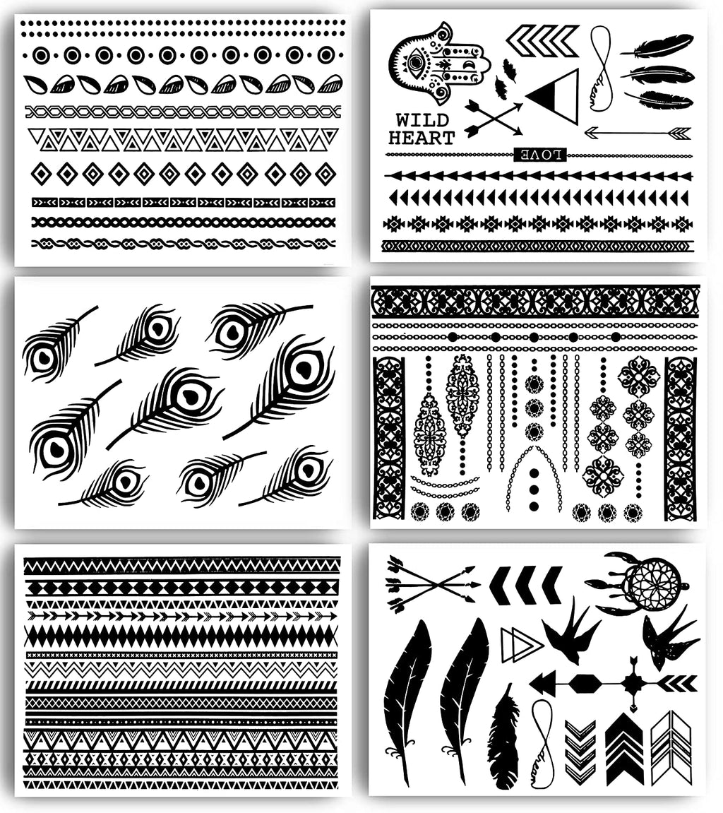 Terra Tattoos Black Henna Temporary Tats 75+ Mandala Tattoos Feathers, Dream Catcher, Arrows Waterproof Nontoxic Long Lasting for Beach, Festivals, & Parties