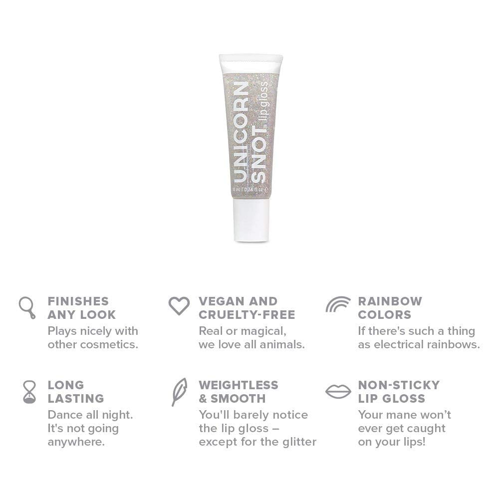 Unicorn Snot Holographic Glitter Lip Gloss - Cosmetic Grade - Sparkle your Lips for Halloween Costumes, Anime Cosplay, Rave Makeup, Fairy Face Paint - Vegan & Cruelty Free - 0.34oz (Silver)