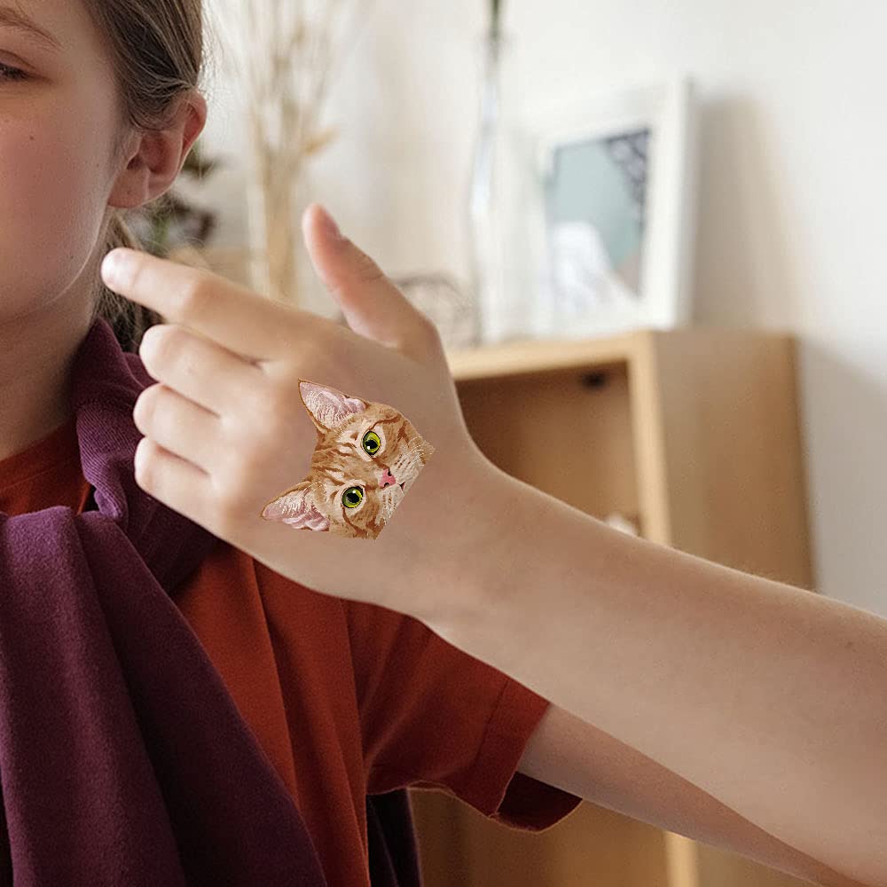 WIRESTER Temporary Tattoo Stickers for Girls Boys Kids Adults, Fake Tattoos on Face Hand Neck Wrist Party Favor Body Art, Tattoo Sheet 6 x 7.87 inch - Cat Designs (Tuxedo, Tabby Kitten, Ragdoll Cat)