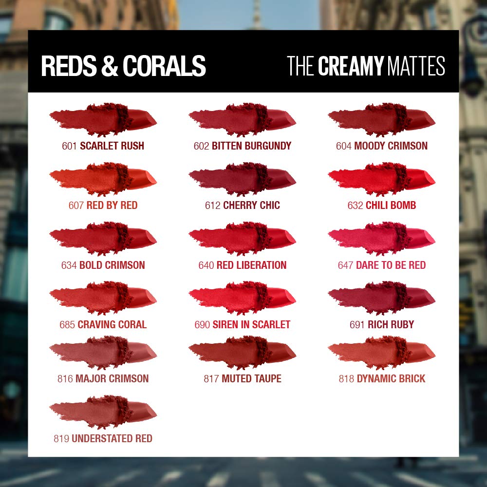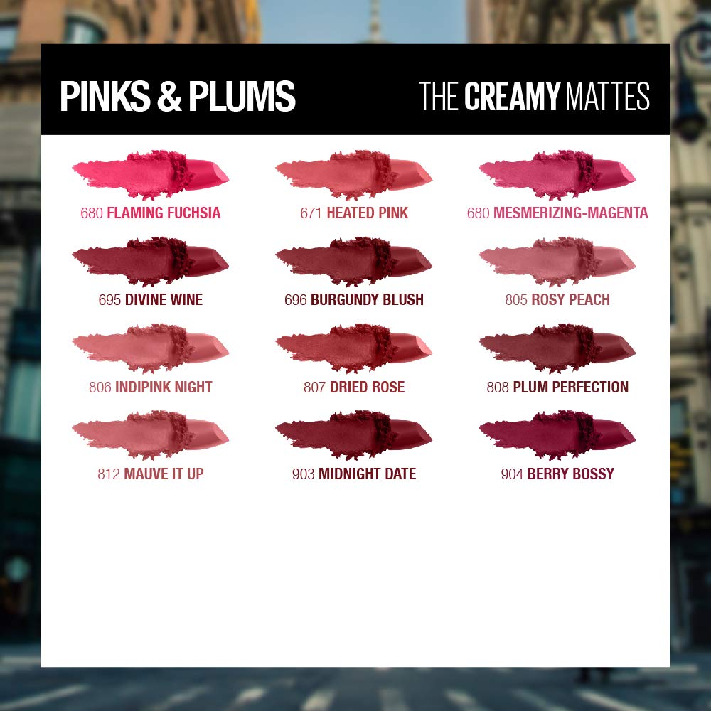 Maybelline Color Sensational Lipstick, Lip Makeup, Matte Finish, Hydrating Lipstick, Nude, Pink, Red, Plum Lip Color, Divine Wine, 0.15 oz; (Packaging May Vary)