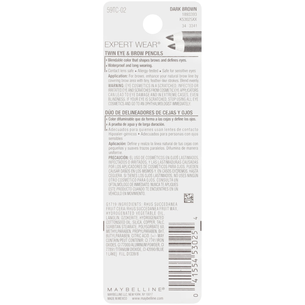 Maybelline New York Makeup Expert Wear Twin Eyebrow Pencils and Eyeliner Pencils, Dark Brown Shade, 0.06 Ounce, 2 Count (Pack of 1)