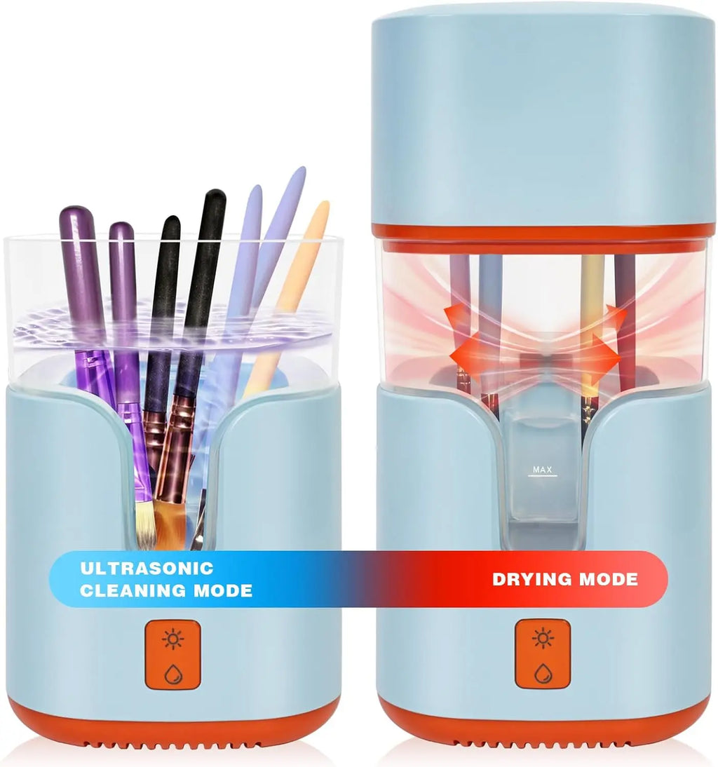 2 In 1 Electric Makeup Brush Cleaner Ultrasonic Cleaner Machine With 95℉ Hot Air Cycle Dryer - Ultra Fast Effective Make Up Brush Washer (Black)