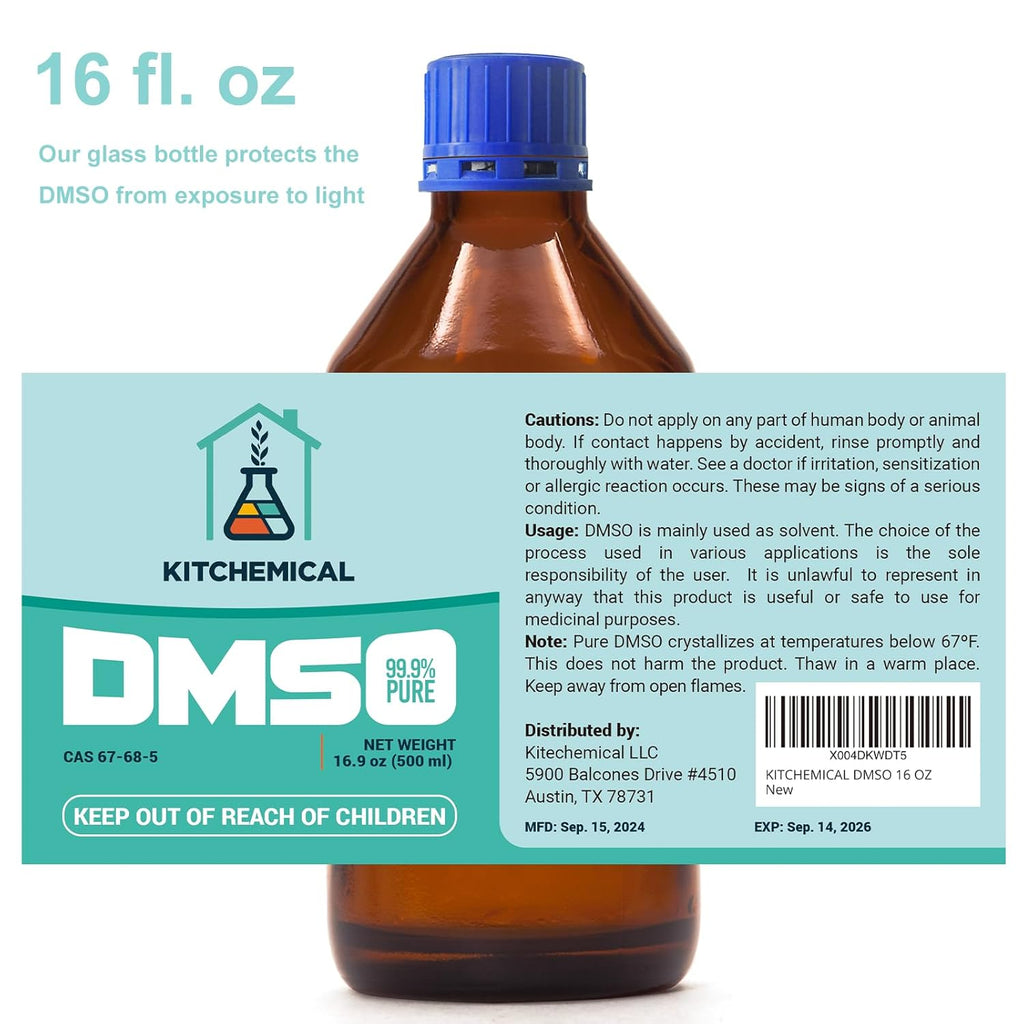 99.9% Pure DMSO in a Glass Bottle, Pure Liquid Dimethyl Sulfoxide 16.9 OZ, Non-Diluted, Low Odor