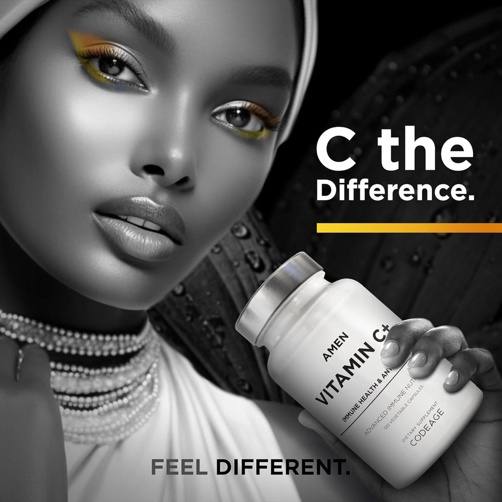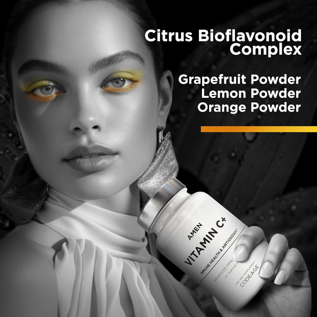 Amen Vitamin C+ Supplement with Zinc, Bioflavonoids, Quercetin, Rose HIPS, Elderberry – Vegan, Non-GMO – 2 Months Supply - 120 Capsules