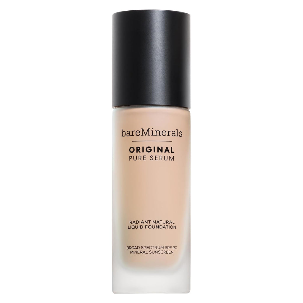bareMinerals Original Pure Serum Radiant Natural Liquid Foundation Mineral SPF 20, Hydrating Skin Tint, Dewy Finish, Lightweight, Medium Coverage, Non-Comedogenic, Vegan