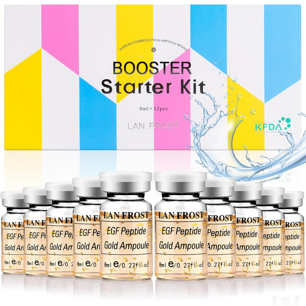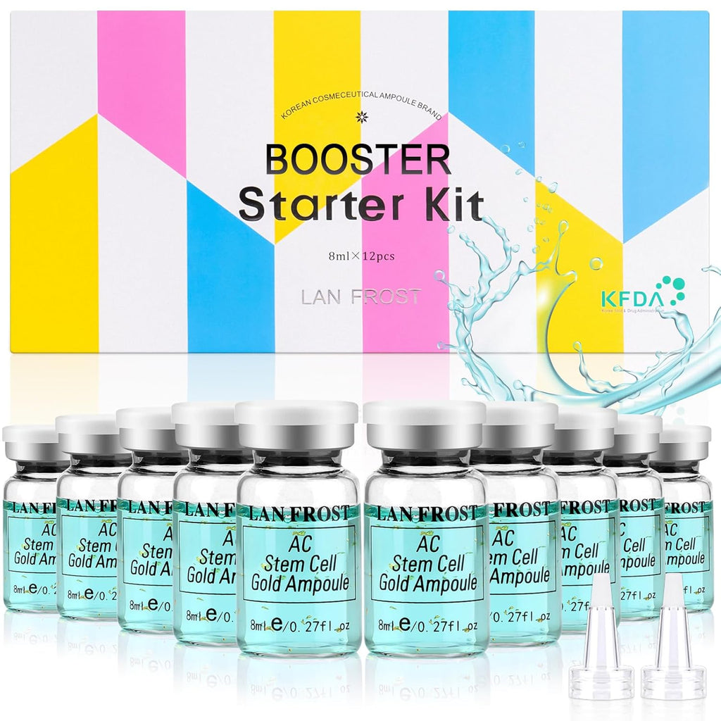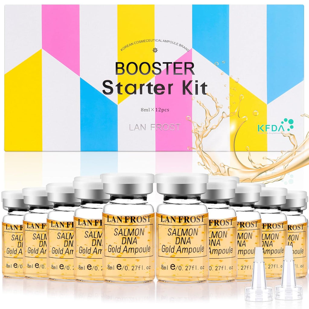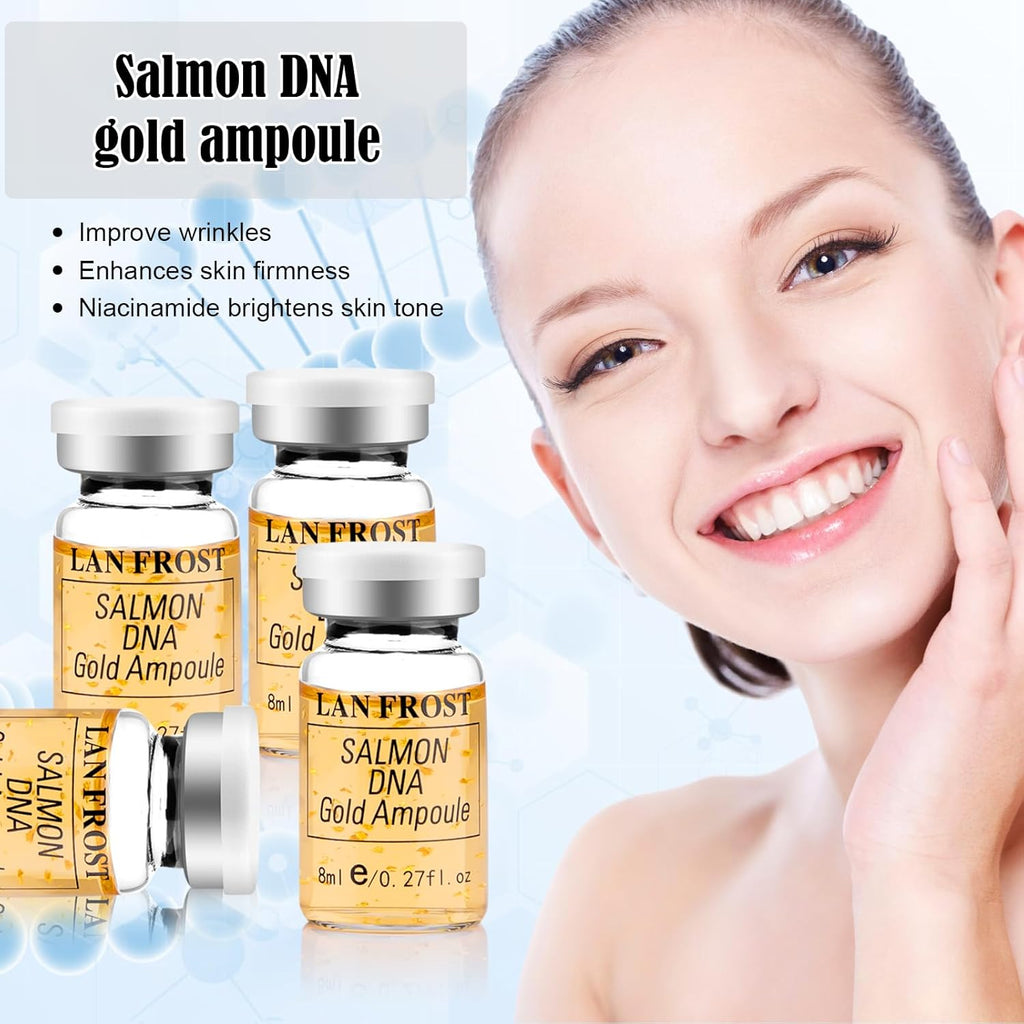 BB Facial Glow Starter Kit Serum Hyaluronic Acid Essence Skin Care Set, Salmon DNA Glod Ampoule 0.27oz 12 Vials, Glow Repair Kit with 7 Different Peptides