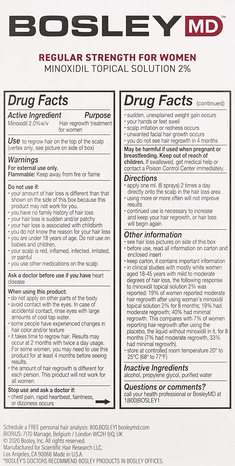 BosleyMD Women's 2% Minoxidil Treatement for Hair Loss and Hair Regrowth, Extra Strength Topical Solution, 2 fl oz (2 Pack)