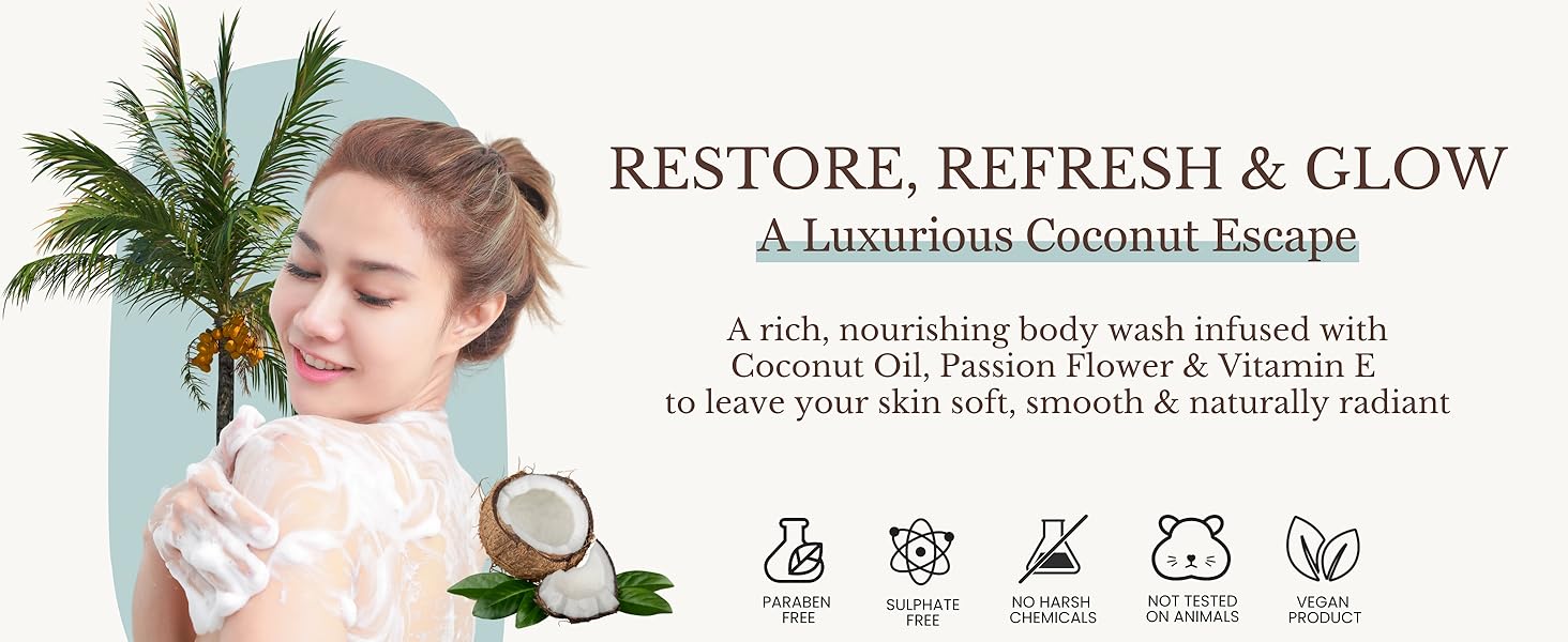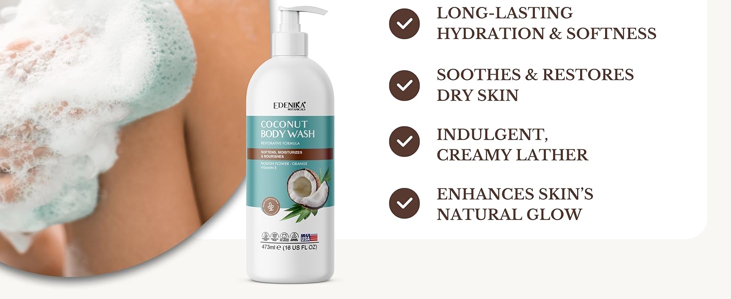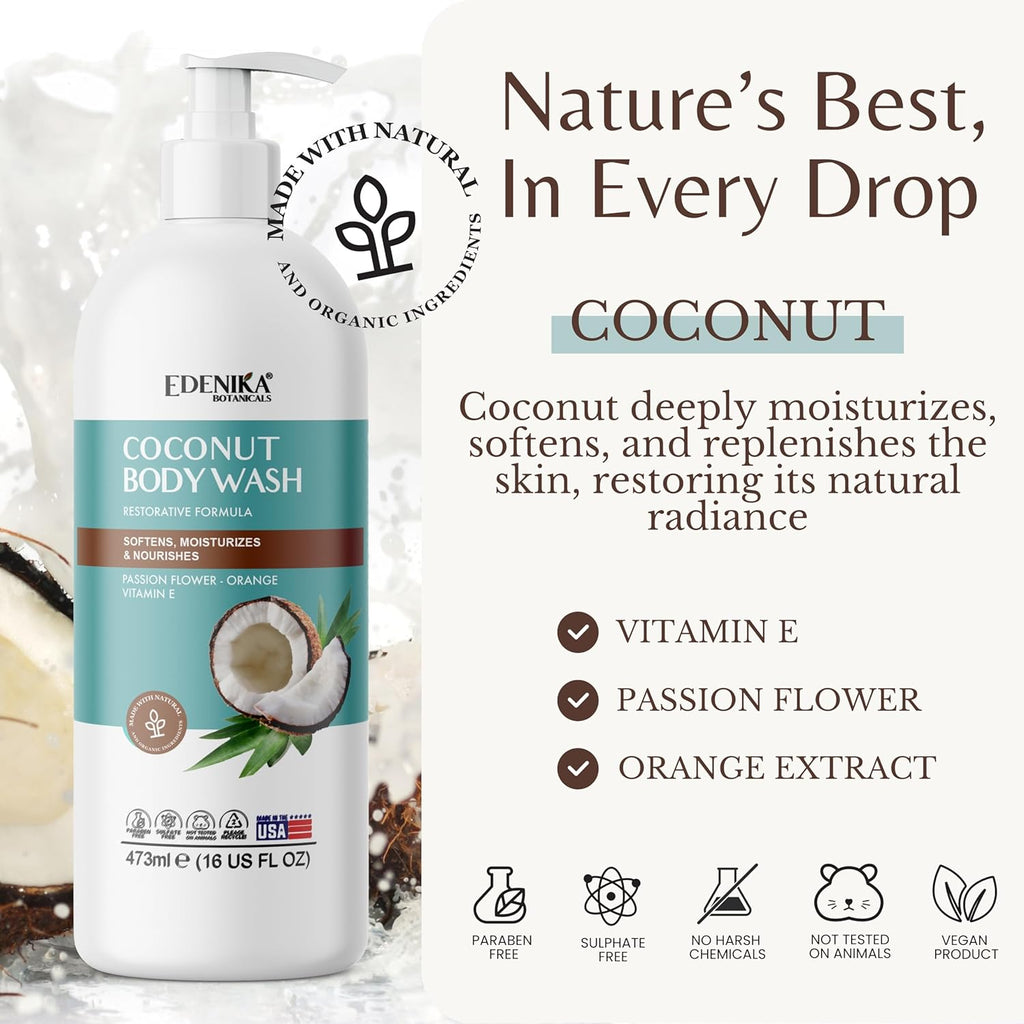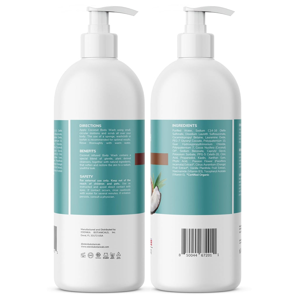 Coconut Body Wash, Cleans, Softens & Nourishes, Ultra Moisturizing Shower Gel for Dry and Sensitive Skin, Women & Men, Organic & Natural, 16 fl oz, 2-Pack