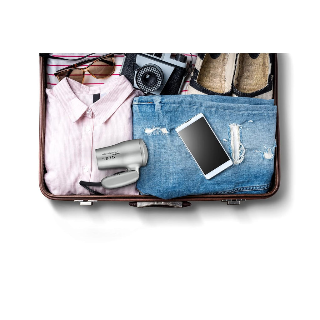 Conair 1875 Watt Compact Dual Voltage Travel Hair Dryer with Folding Handle, Grey