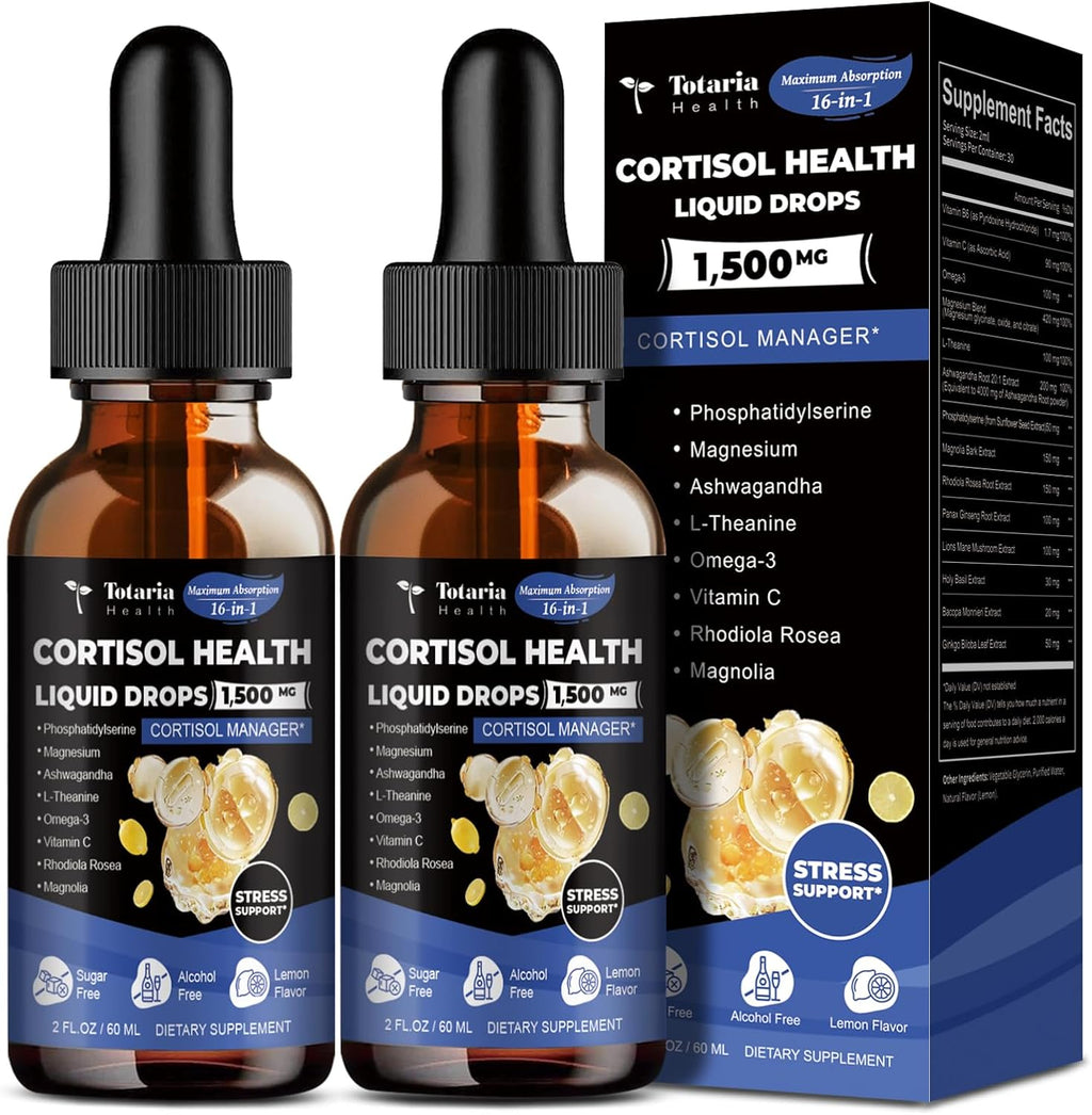 cortisol Supplement Liquid Drops Hormone Balance for Women Men with Magnesium Complex,Ashwagandha,Rhodiola Rosea,L Theanine,Phosphatidylserine Supplements Mood, Focus, Sleep Support 2 FL.OZ