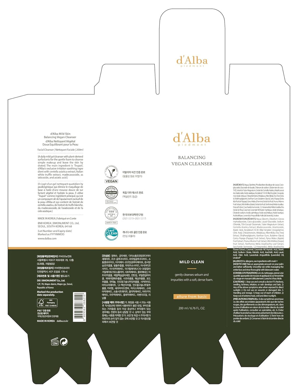 d'alba Piedmont Italian White Truffle Mild Skin Balancing Vegan Cleanser, Hydrating and Calming Cleanser, Mild pH Cleanser with White Truffles for Sensitive Skin, Non-Tightening Gentle Formula