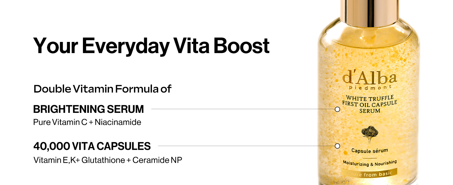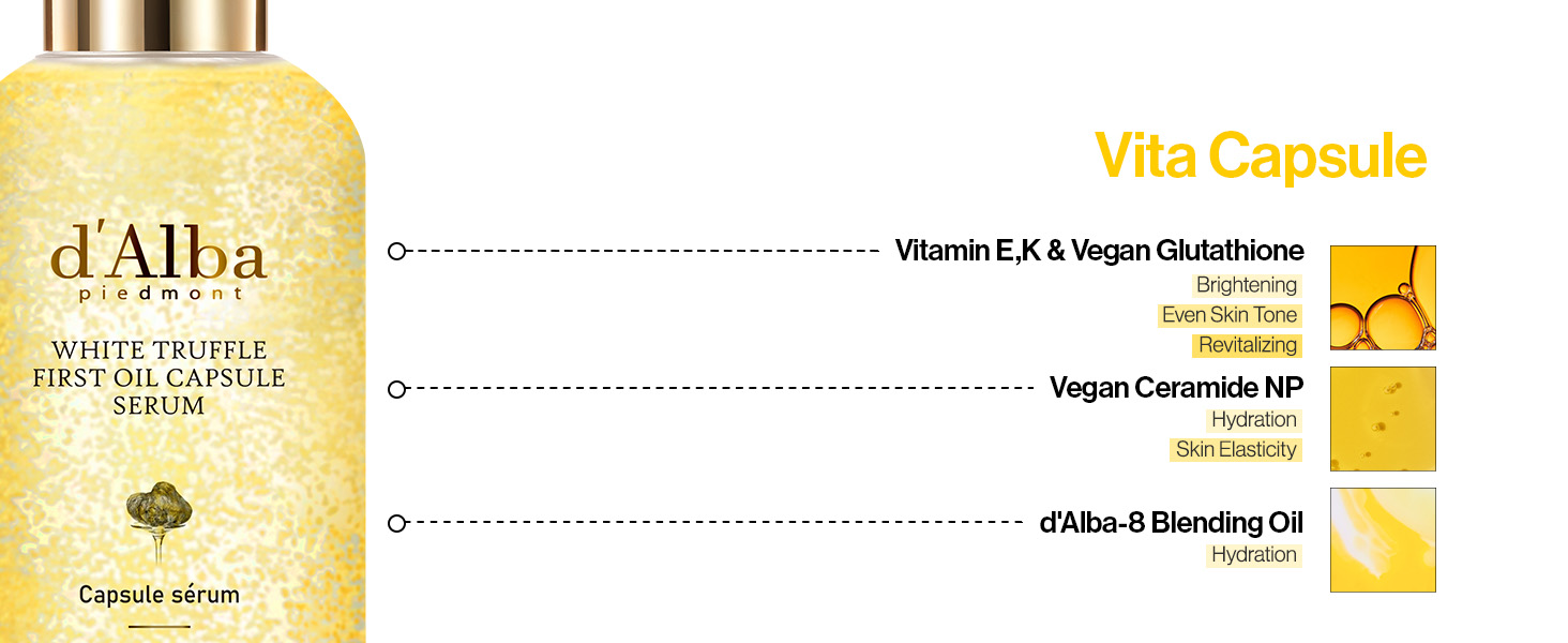 d'alba Piedmont White Truffle Oil Capsule Serum, Daily Vita Boost for Luminous Skin, Double Vitamin Formula, Korean Skin Care (3.38fl. oz.)