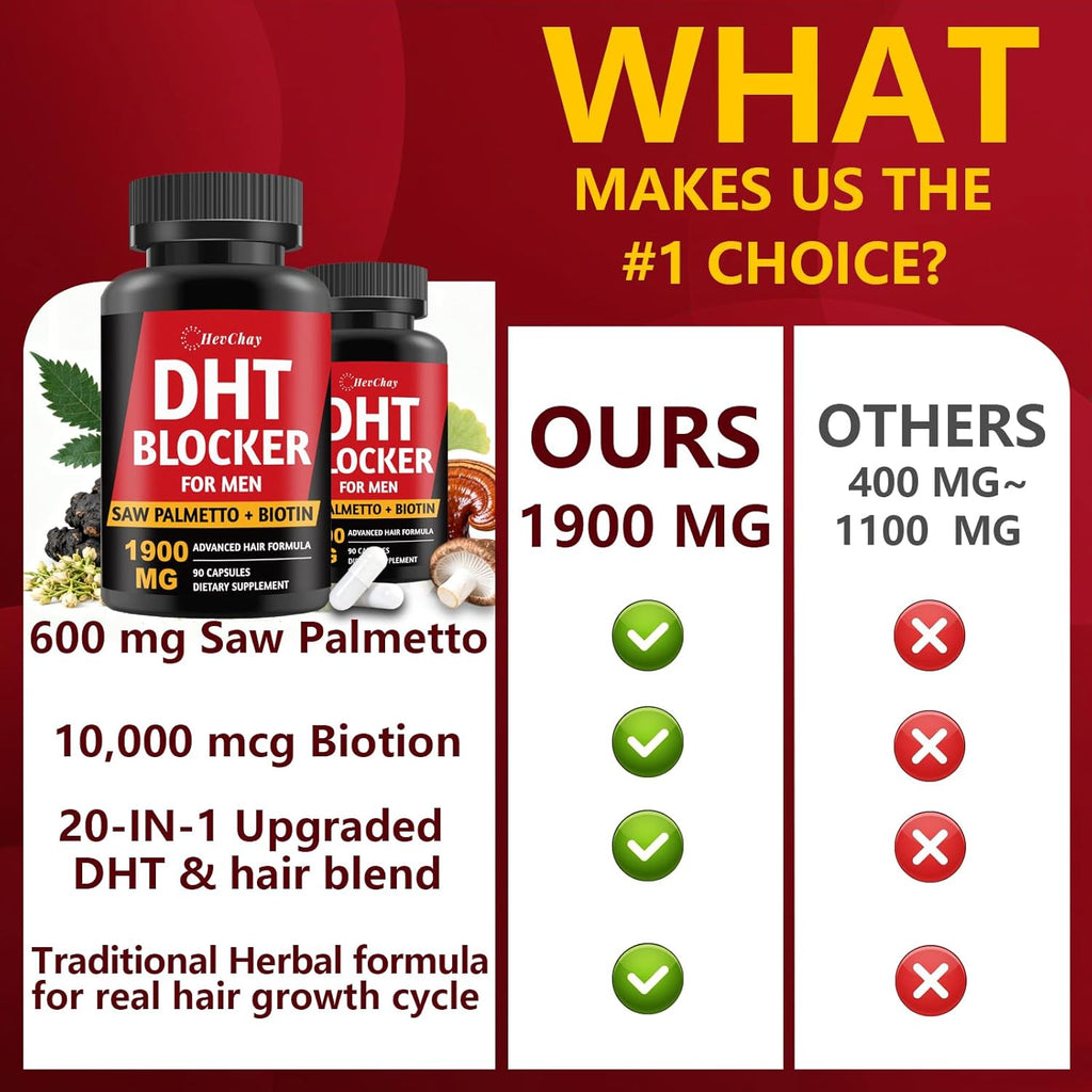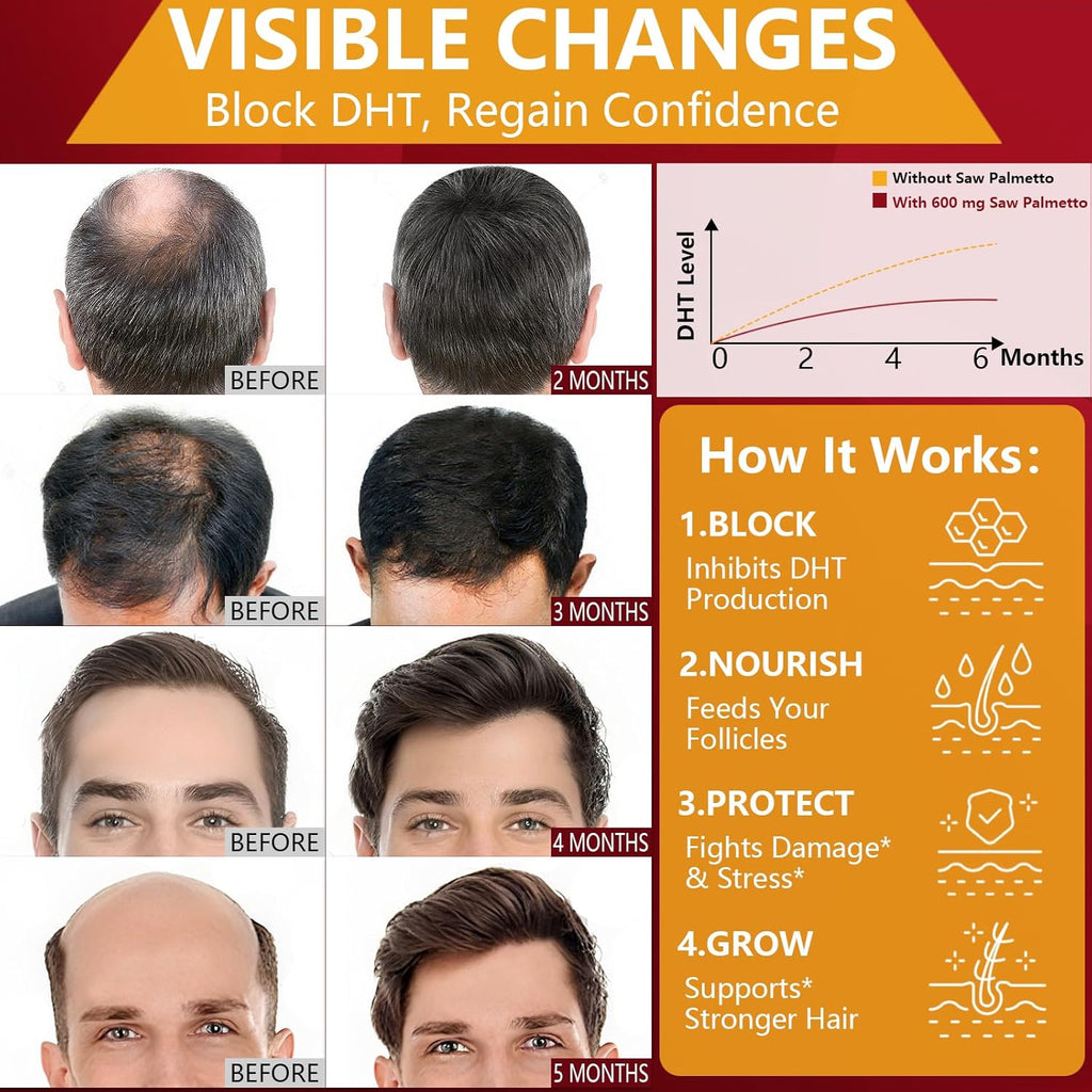 DHT Blocker for Men | Extra Strength Saw Palmetto & Biotin Hair Growth Supplement - Hair Growth Vitamins - Hair Regrowth - Natural Hair Loss Supplements for Men - Proprietary Herbal Blends,1 Pack
