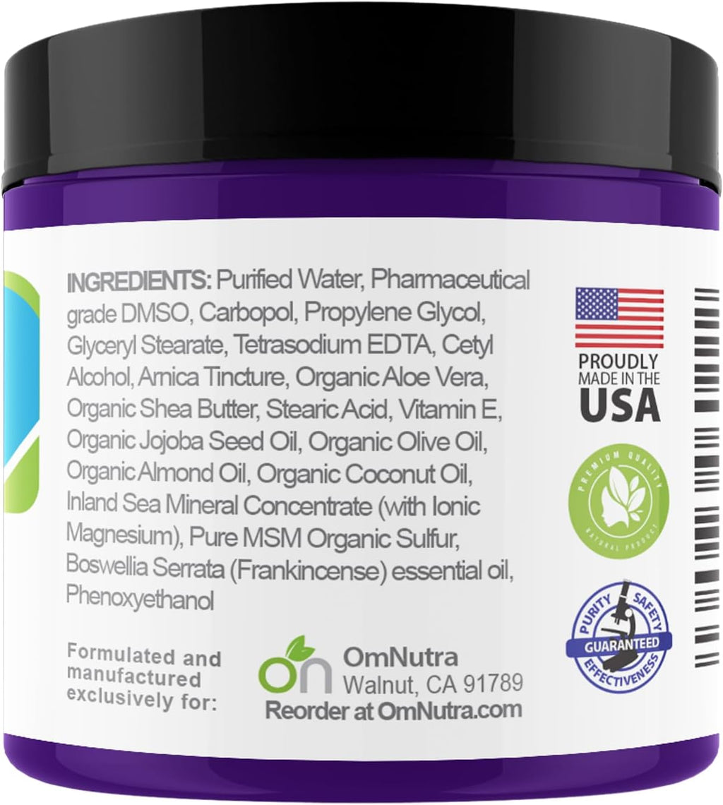 OmNutra DMSO Cream combines pure dimethyl sulfoxide (DMSO 99.9% Pure) with natural botanicals and inland sea minerals to deliver clean comfort, hydration, and renewal. Unlike simple DMSO liquid or a DMSO roll on, this cream offers a smooth, non-greasy application that combines the strength of medical grade DMSO with the soothing hydration of MSM lotion. Whether you’re familiar with DMSO liquid 99.9 pure, DMSO gel, or other DMSO roll on 99.9 pure options, this cream offers a balanced and convenient alternative designed for daily use.