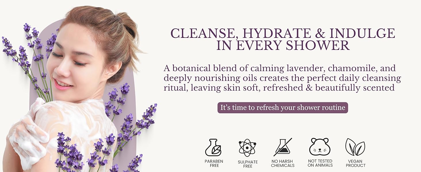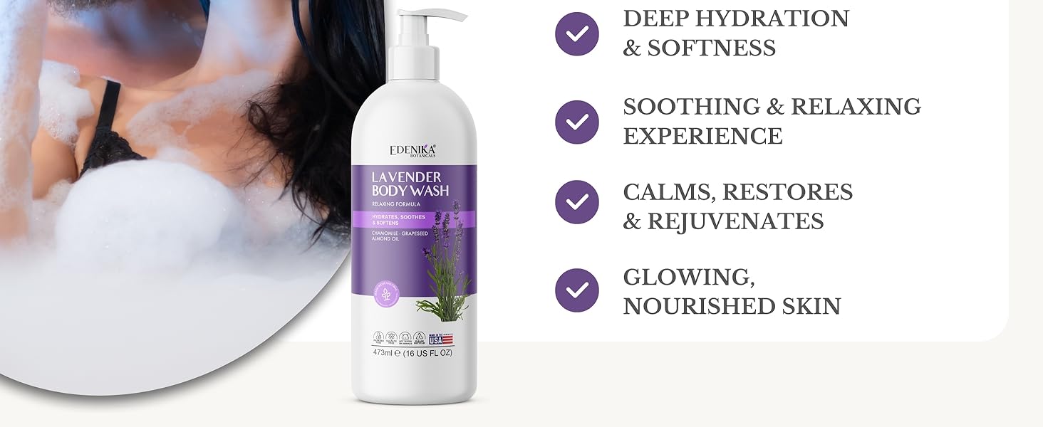 Edenika Lavender Body Wash with Vitamin E, Cleanses, Relaxes & Moisturizes, Stress Relief Shower Gel for Dry and Sensitive Skin, Women & Men, Organic & Natural, 16 fl oz, 2-Pack