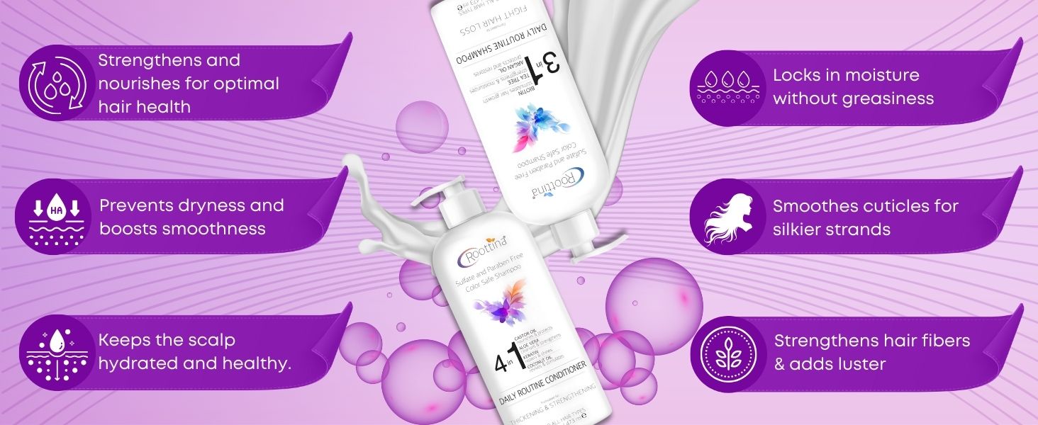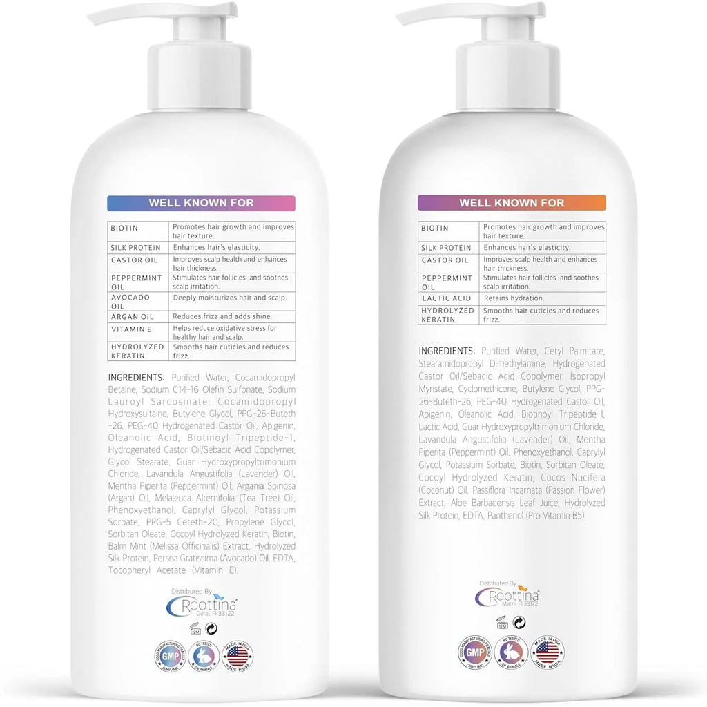Fights Hair Loss, Roottina Daily Routine Shampoo and Conditioner Set with DHT Blockers for Women, Promotes Hair Thickening and Growth, , Made in USA (16 fl oz x 2)