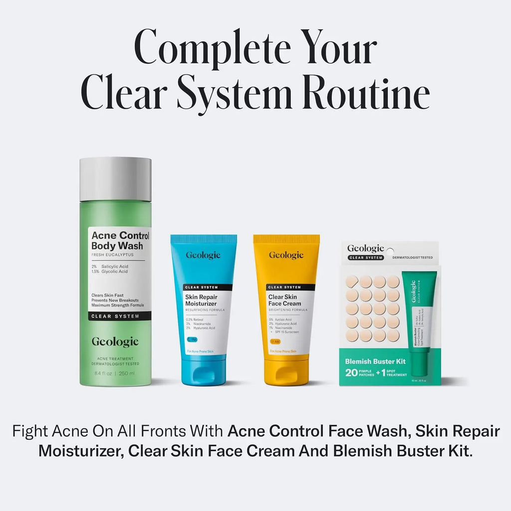 Geologie Acne Control Face Wash | 2% Salicylic Acid Exfoliating Cleanser | Clears Skin, Controls Oil & Prevents Breakouts | Clean Citrus Scent | For Men & Women | 6 fl oz