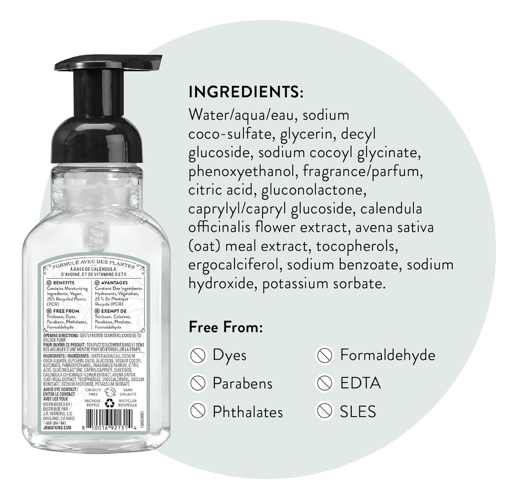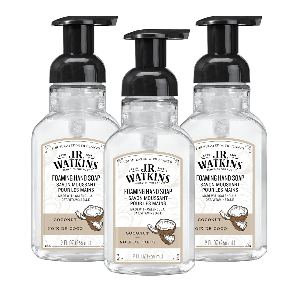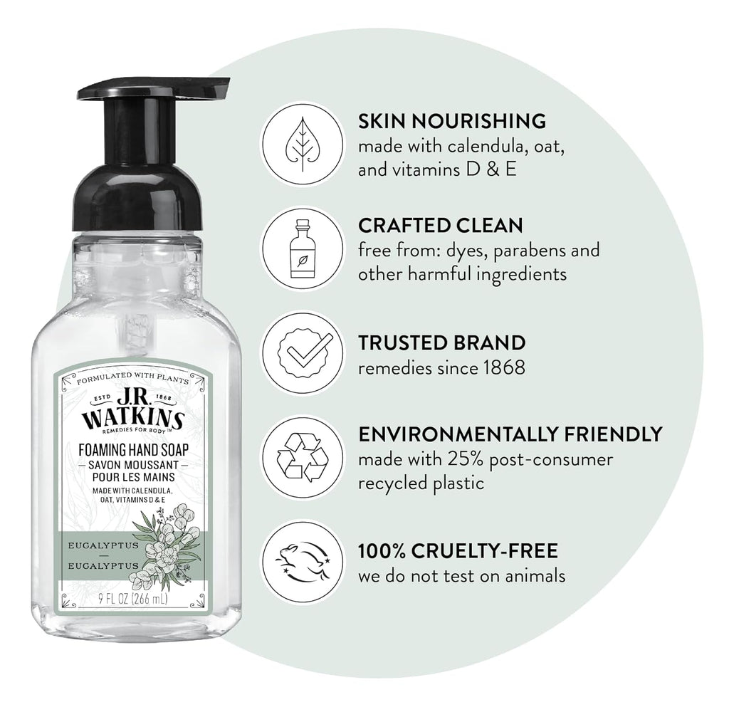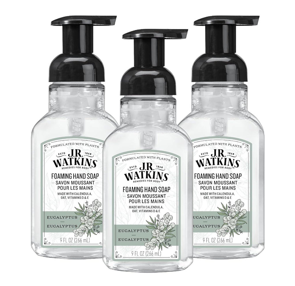 J.R. Watkins Foaming Hand Soap Pump with Dispenser, Moisturizing Hand Soap Foam, Alcohol-Free, Cruelty-Free, , Use for Kitchen or Bathroom, Eucalyptus, 9 fl oz,3 Pack