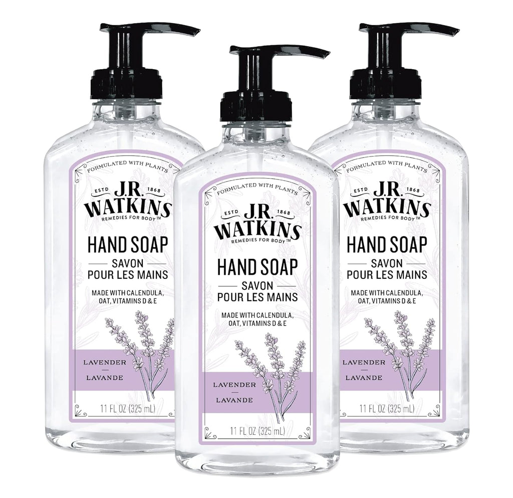 J.R. Watkins Gel Hand Soap For Bathroom or Kitchen, Scented, Cruelty Free, 11 Fl Oz, Lavender, 3 Pack