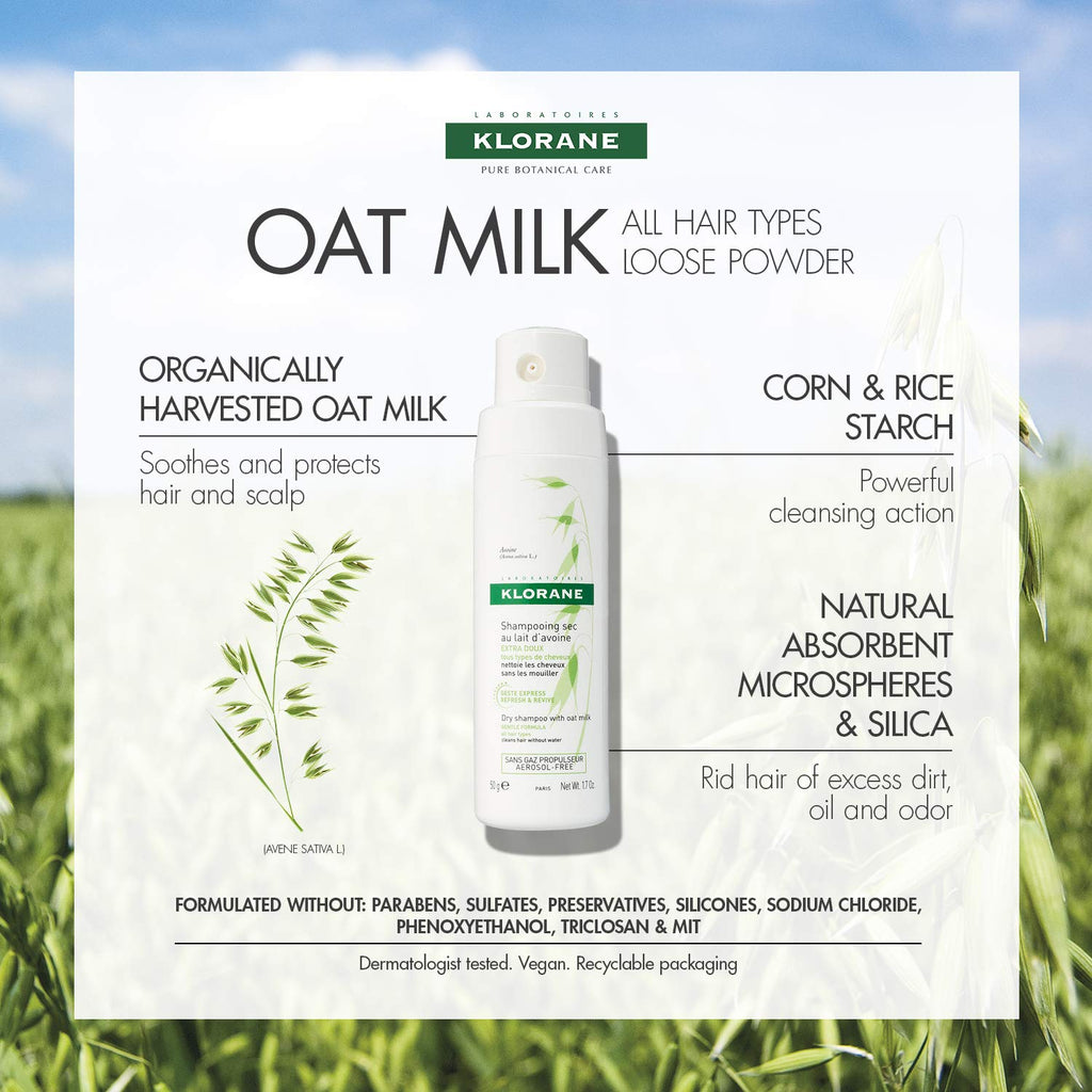 Klorane Dry Shampoo Powder with Oat Milk, Non-Aerosol Formula, Eco-friendly Loose Powder, Paraben & Sulfate-Free