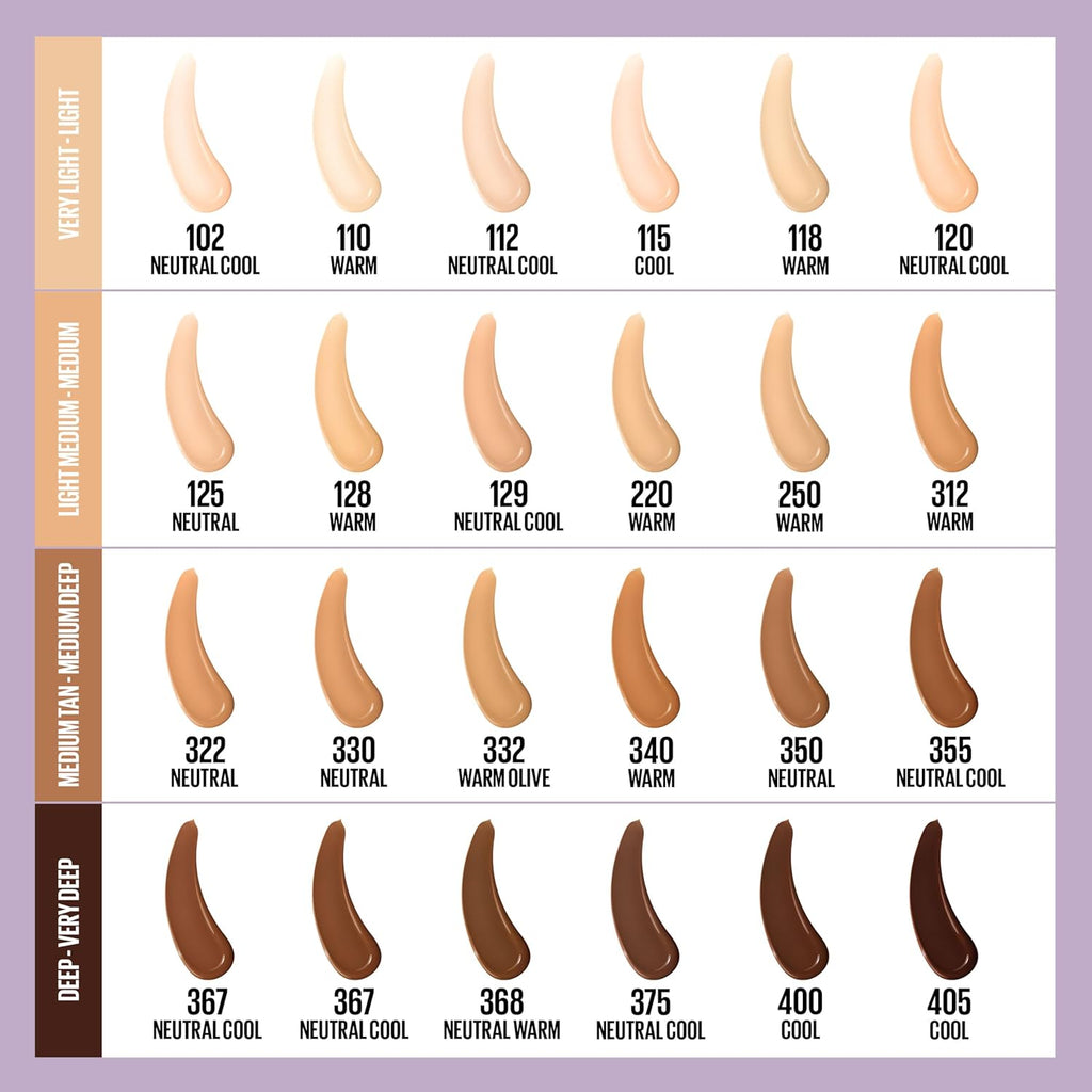Maybelline Super Stay Lumi-Matte Foundation, Lightweight and Buildable Full Coverage Foundation Makeup For Up To 30HR Wear, 102, 1 Count