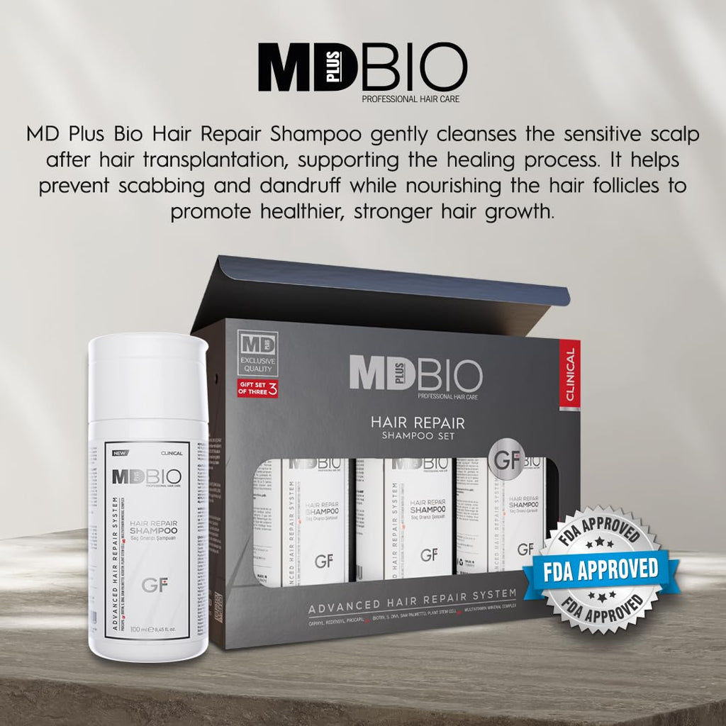 MBBIO Professional Hair Repair Shampoo Set 3 x 3.4oz – Advanced Post-Transplant Care with Growth Factors, Plant Stem Cells & DHT Blockers for Scalp Healing, Hair Strengthening, and Fuller Growth
