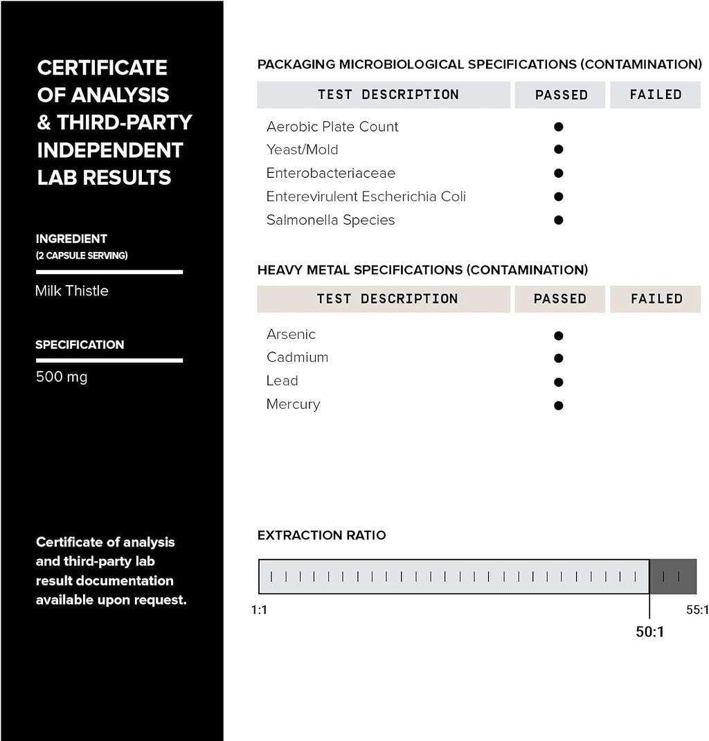 Milk Thistle - Ultra High Potency 50:1 Extract with 80% Silymarin - Highly Concentrated - Third-Party Lab Tested - 90 Capsules