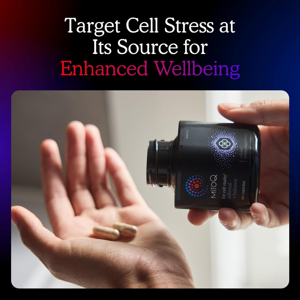MitoQ +Balance | Sensoril Ashwagandha, Rhodiola & Maritime | Support Balanced Cortisol Levels, Stress Management, Restorative Sleep & Cell Health (60 Capsules)