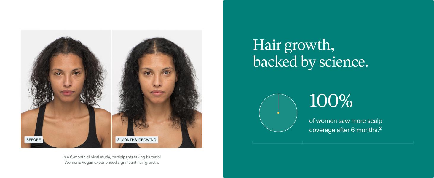 Nutrafol Women's Hair Growth Supplements, For Women 18-44 Years Old, Clinically Tested for Visibly Thicker, Stronger Hair, 100% Vegan Ingredients, Dermatologist Recommended - 1 Month Supply