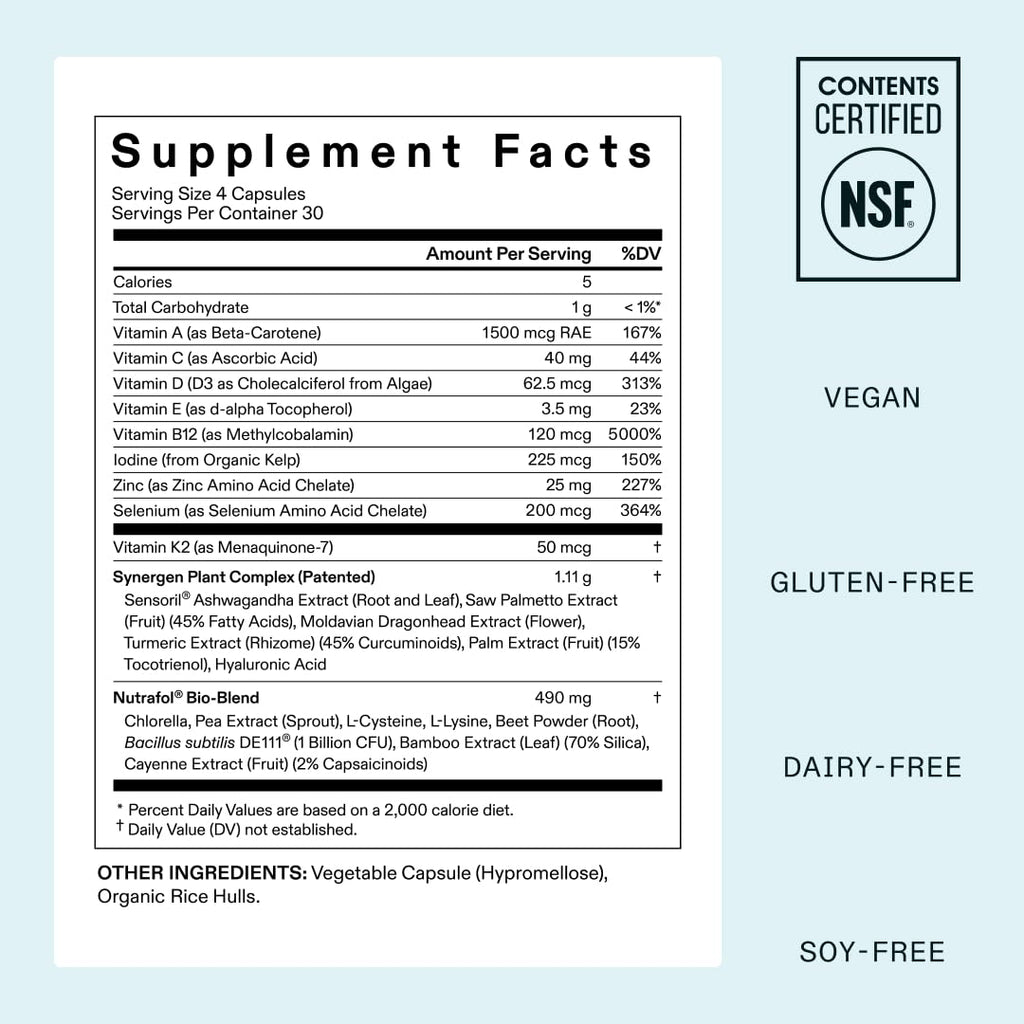 Nutrafol Women's Hair Growth Supplements, for Women 18-44 Years Old, Clinically Tested for Visibly Thicker, Stronger Hair, 100% Vegan Ingredients, Dermatologist Recommended - 1 Month Supply, 1 Pouch