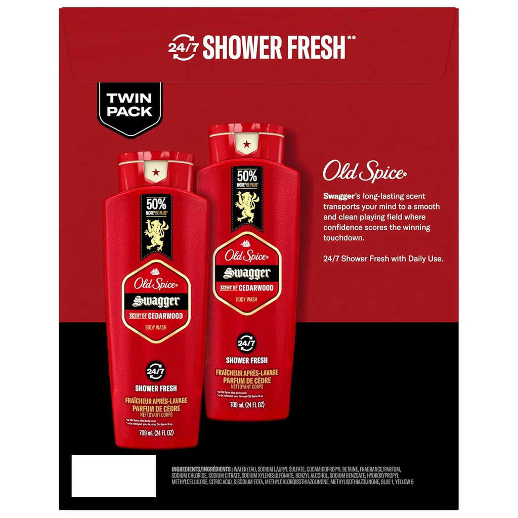 Old Spice Body Wash for Men, 24/7 Shower Fresh with Lasting Scent, Red Collection, Swagger with Cedarwood Scent, 24 fl oz (Pack of 2)