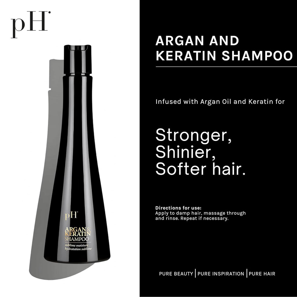 pH PURE HAIR Argan & Keratin Shampoo - Deeply Hydrating & Moisturizing Hair Shampoo for Damaged, Color-Treated Hair - Adds Shine, Strength & Softness - 8.45 oz