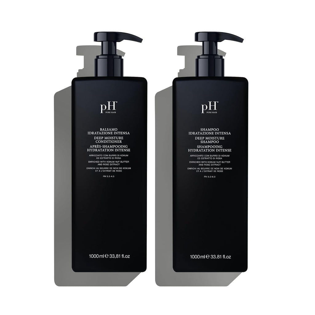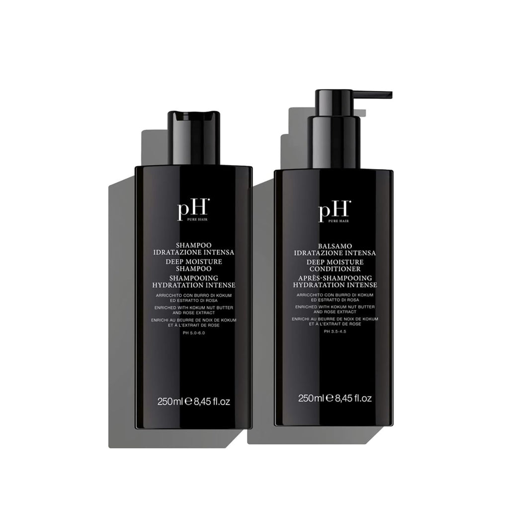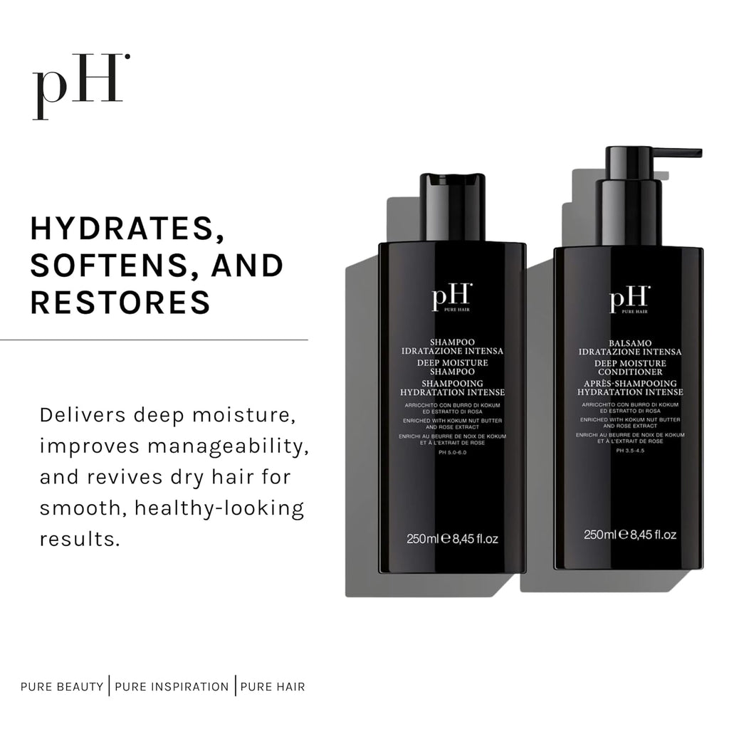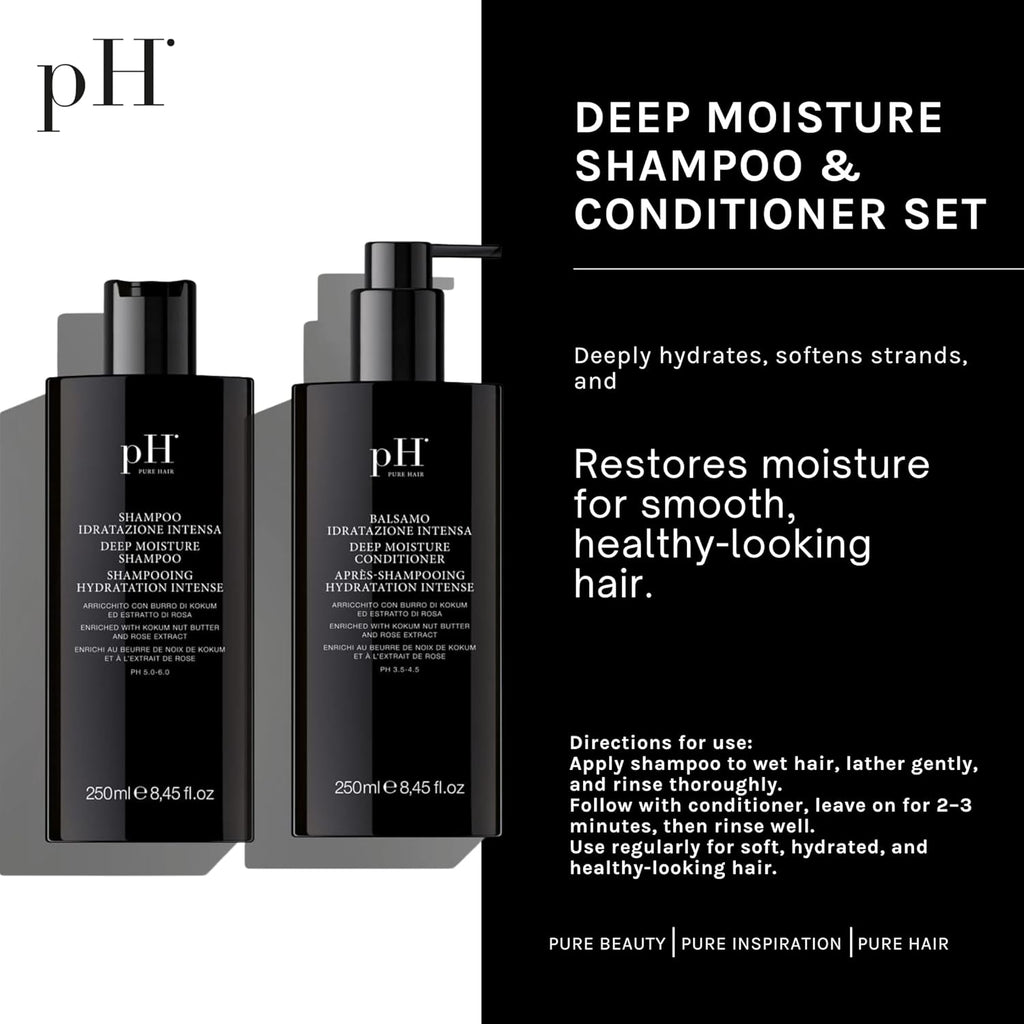 pH PURE HAIR Deep Moisture Shampoo & Conditioner Set - Moisturizing Formula For Dry Damaged Hair - Enriched with Kokum Nut Butter and Rose Extract - 8.45 Oz (Pack of 2)