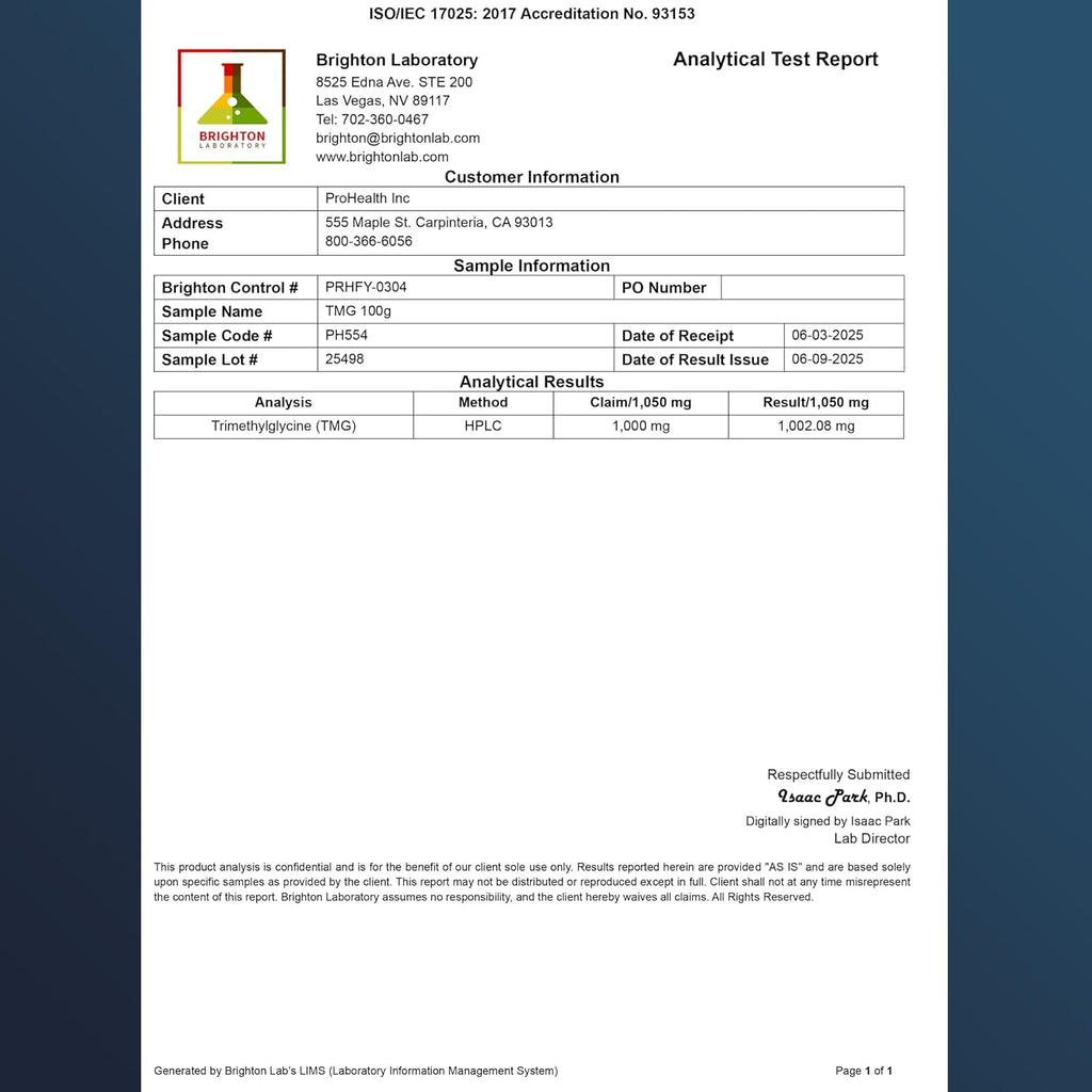 ProHealth Longevity TMG Pro 100 Grams Bulk Powder (Trimethylglycine - Betaine Anhydrous) - Methylation Support