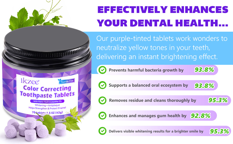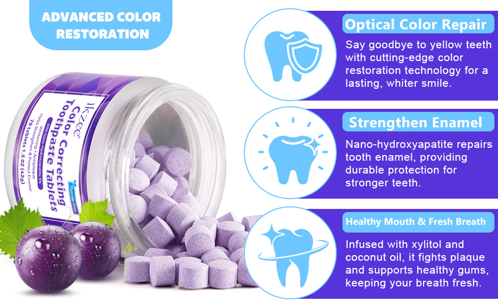 Purple Toothpaste Tablets,Flouride Free Toothpaste Tablets,Sensitive Toothpaste Tablets,Travel Toothpaste,Hydroxyapatite Toothpaste Tablets,Purple Whitening Toothpaste,(70PCS,Grape Flavors)