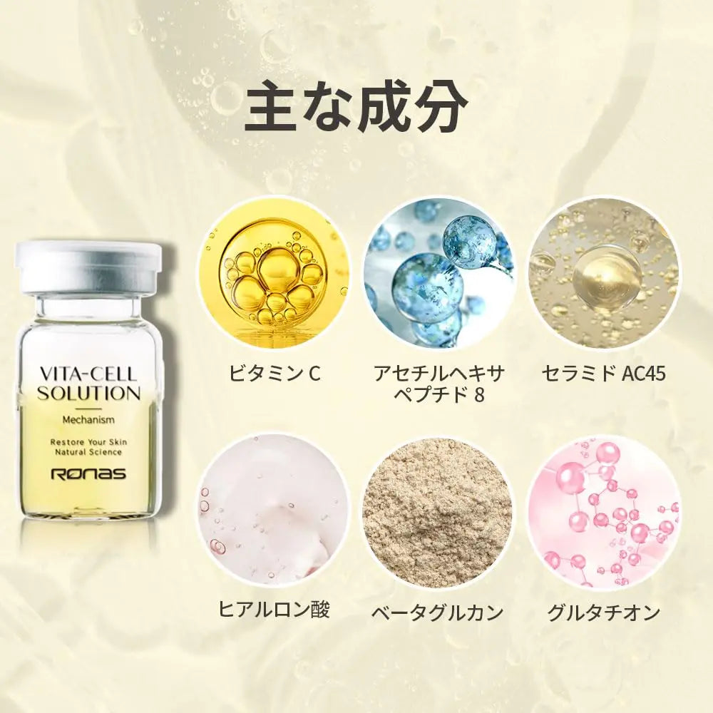 Ronas VITA Cell Solution,Anti Aging Serum for Face neck with Hyaluronic Acid,Vitamin C, Ceramide, Beta glucan, Hydrating Tone up serum for Dark Spots, Fine Lines & wrinkles 0.16oz 10vial, 1.6 Fl Oz