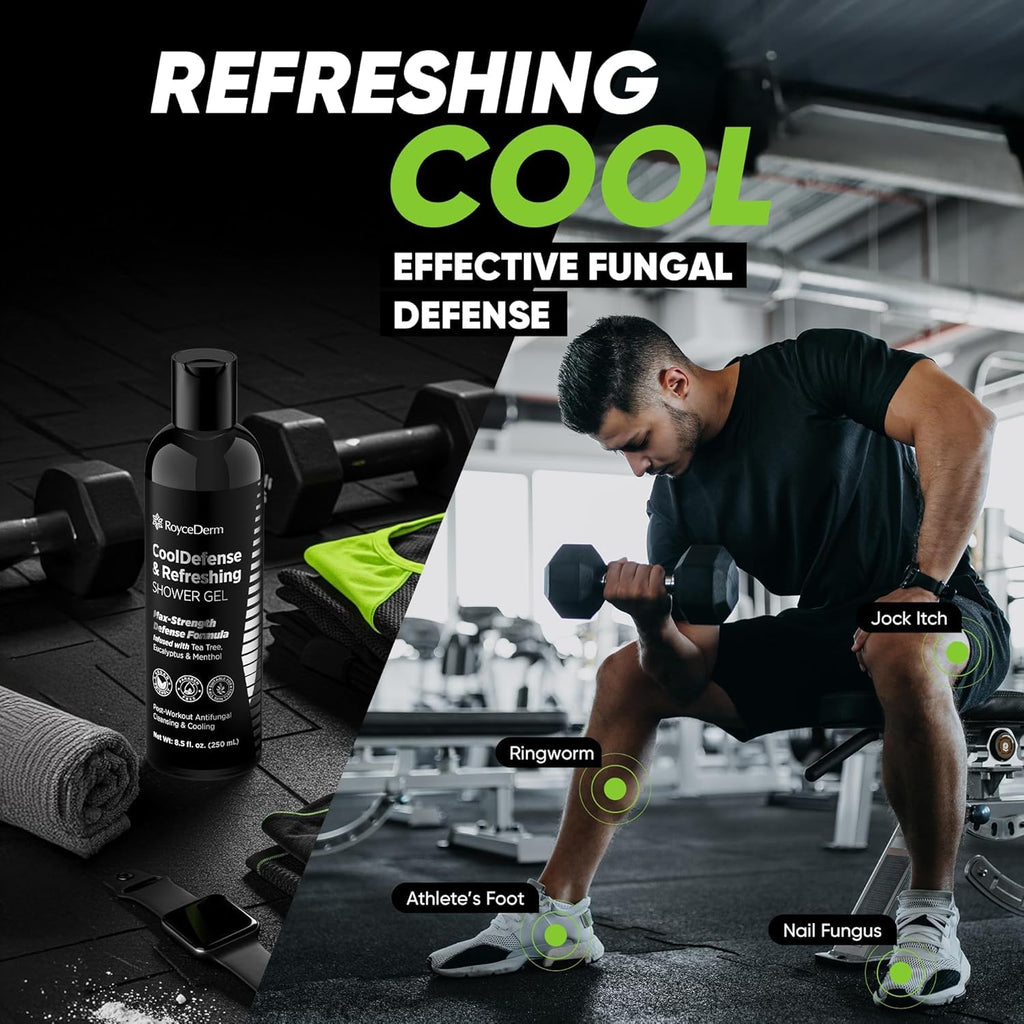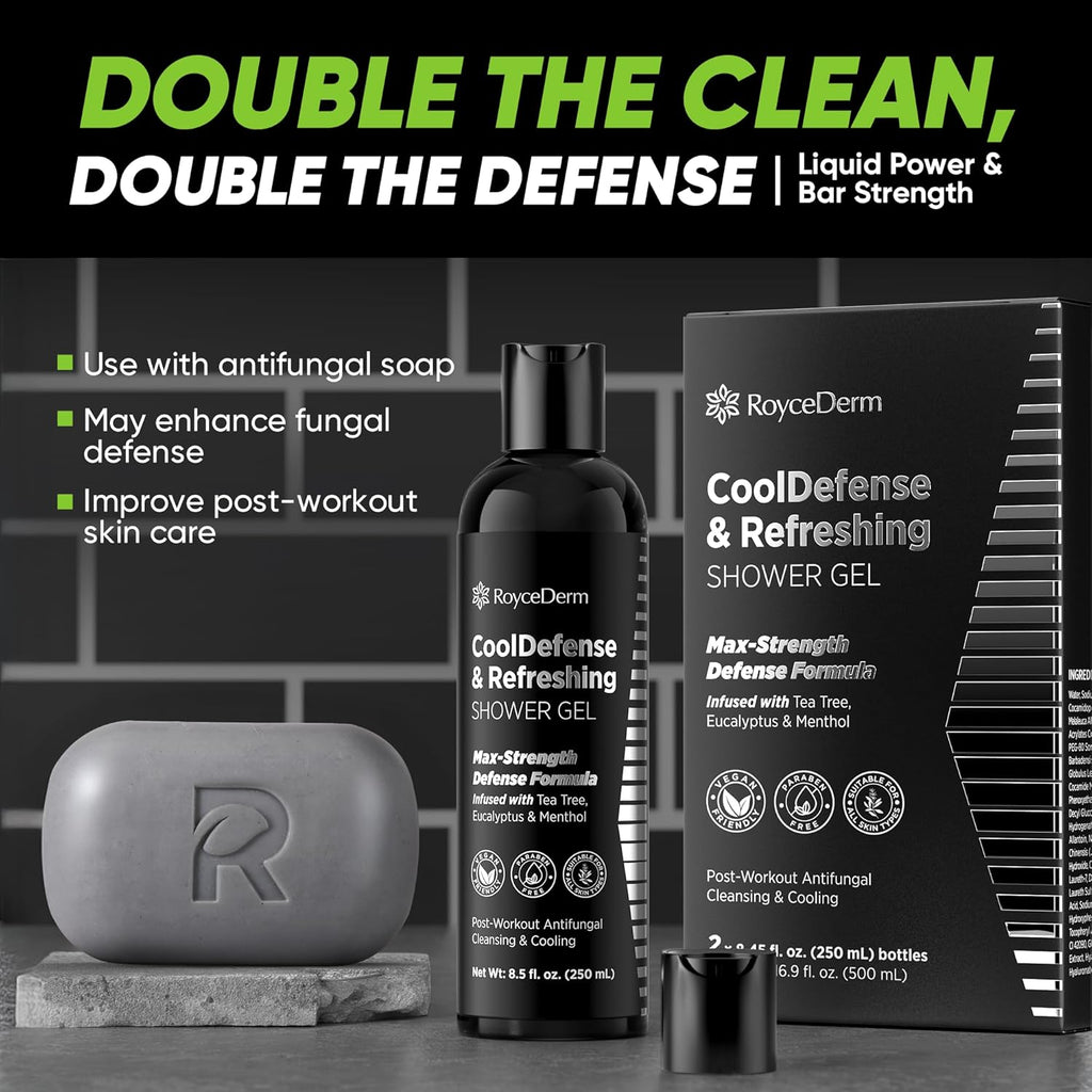 Roycederm Antifungal Body Wash for Men – Helps with Athlete’s Foot, Jock Itch & Ringworm – Cooldefense Shower Gel with Tea Tree & Menthol Post-Workout Cleanse – SLS-Free, 2 Pack