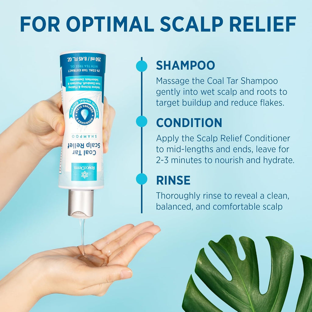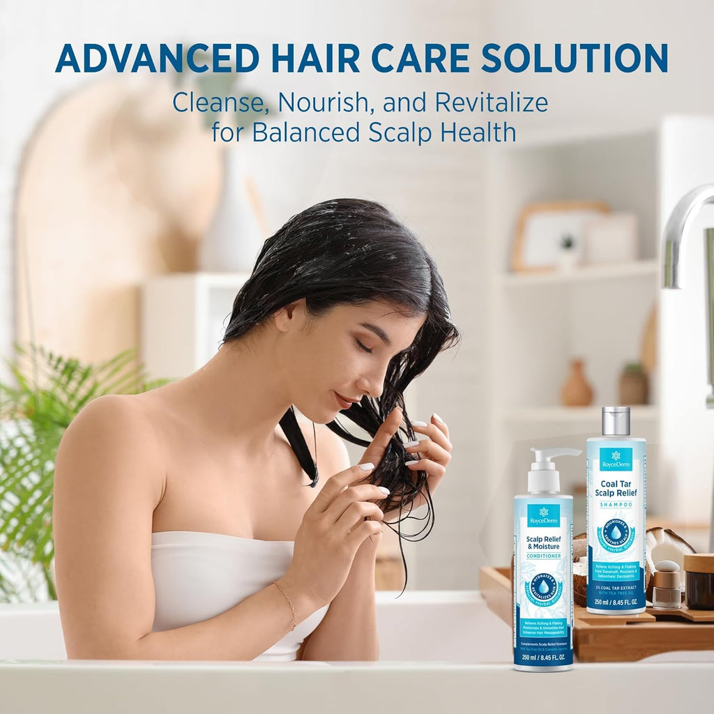 Roycederm Coal Tar Antidandruff Shampoo & Conditioner Set: 2% Coal Tar Extract Scalp Relief Shampoo for Psoriasis, Dandruff & Seborrheic Dermatitis - Soothes Itchy Scalp, Hydrates Hair