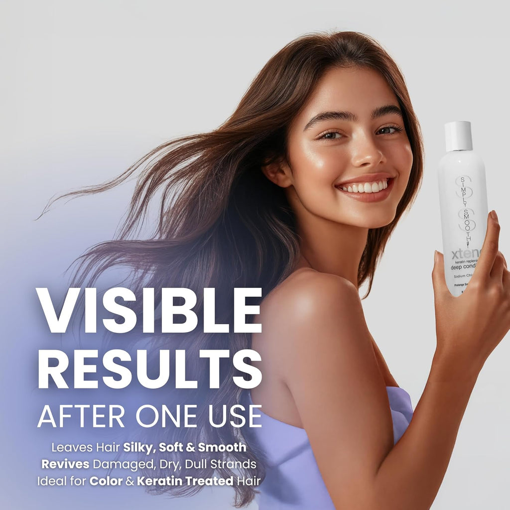 SIMPLY SMOOTH Xtend Keratin Deep Conditioner – Lightweight Hydrating Hair Mask for Dry, Damaged, Color-Treated, Curly, and Keratin-Treated Hair – Frizz Control, Repair, Softness, Shine, 8.5 oz