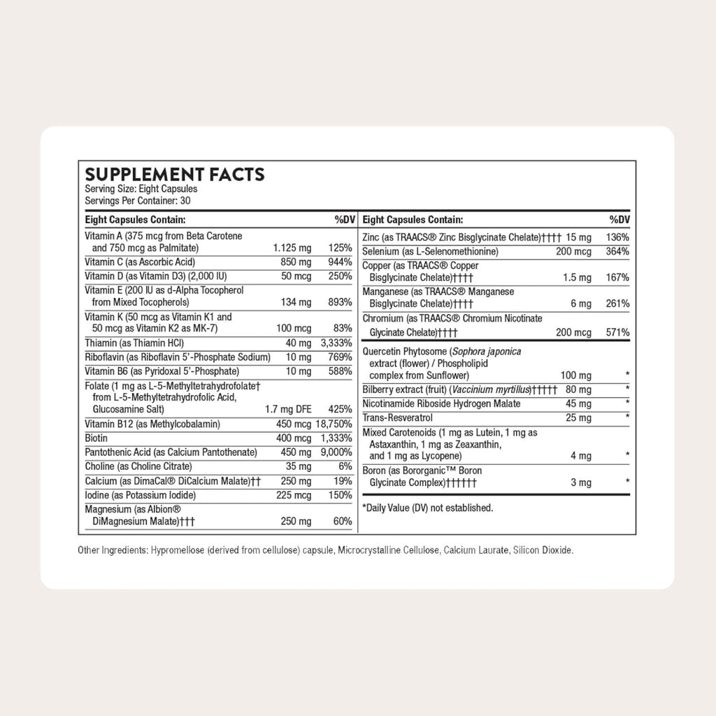 THORNE - Advanced Nutrients - Multivitamin & Mineral Supplement with Nicotinamide Riboside & Resveratrol - Foundational Support, Healthy Aging & Eye Health* - 30 Servings